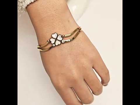 Artklim Gold Plated Clover Bangle Bracelet