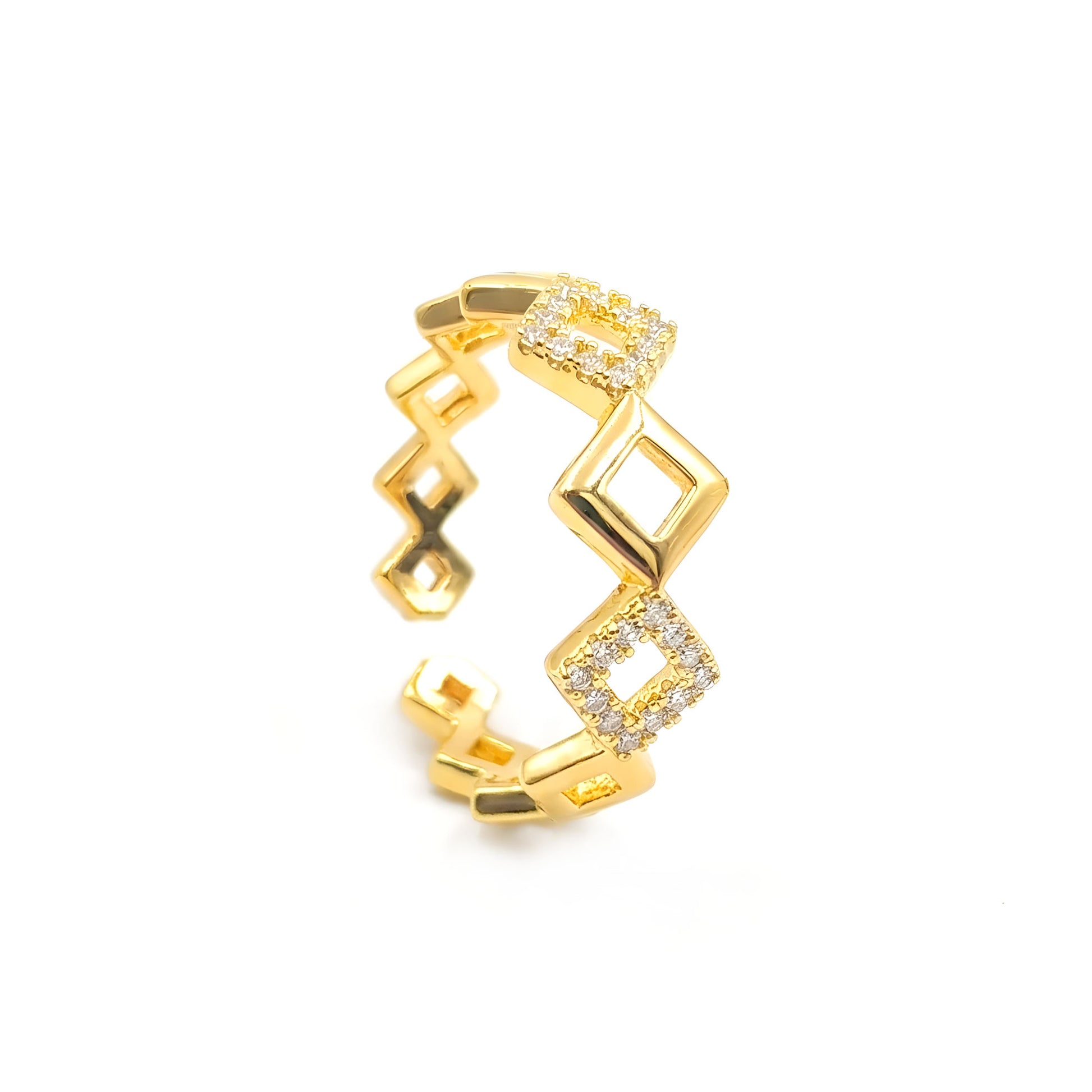 Artklim Gold-Plated Crystal Square Charm Design Anti-Tarnish Ring
