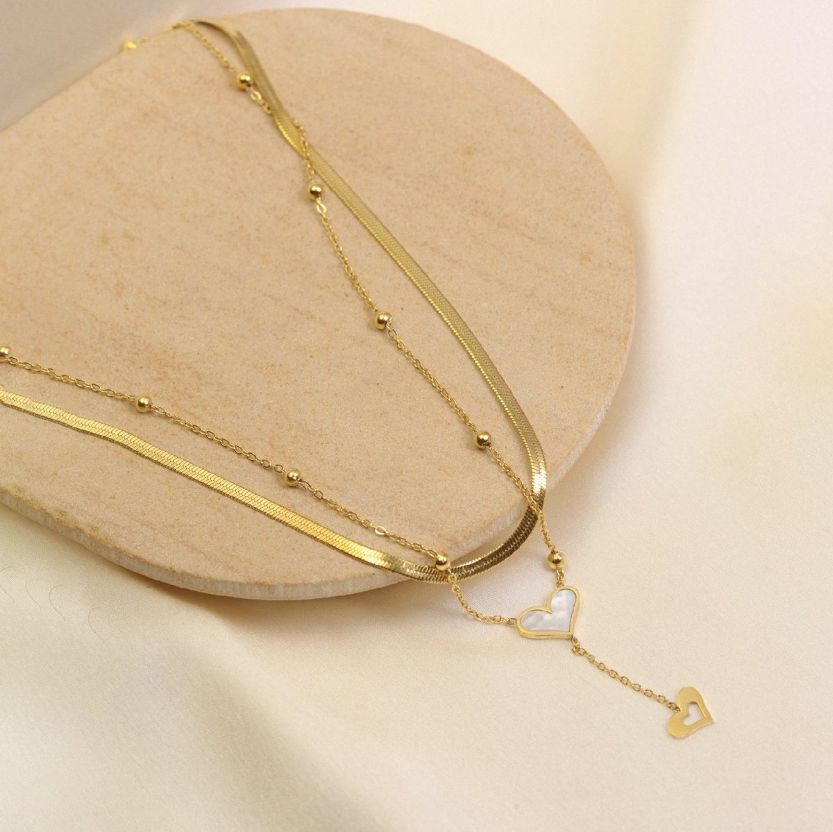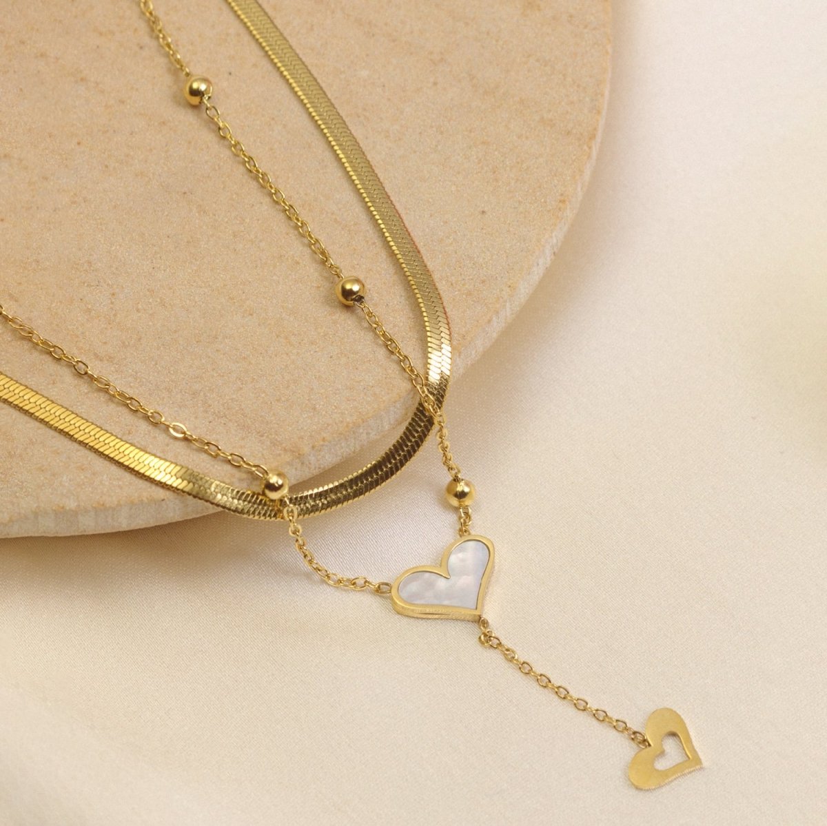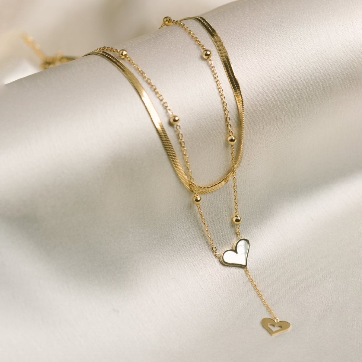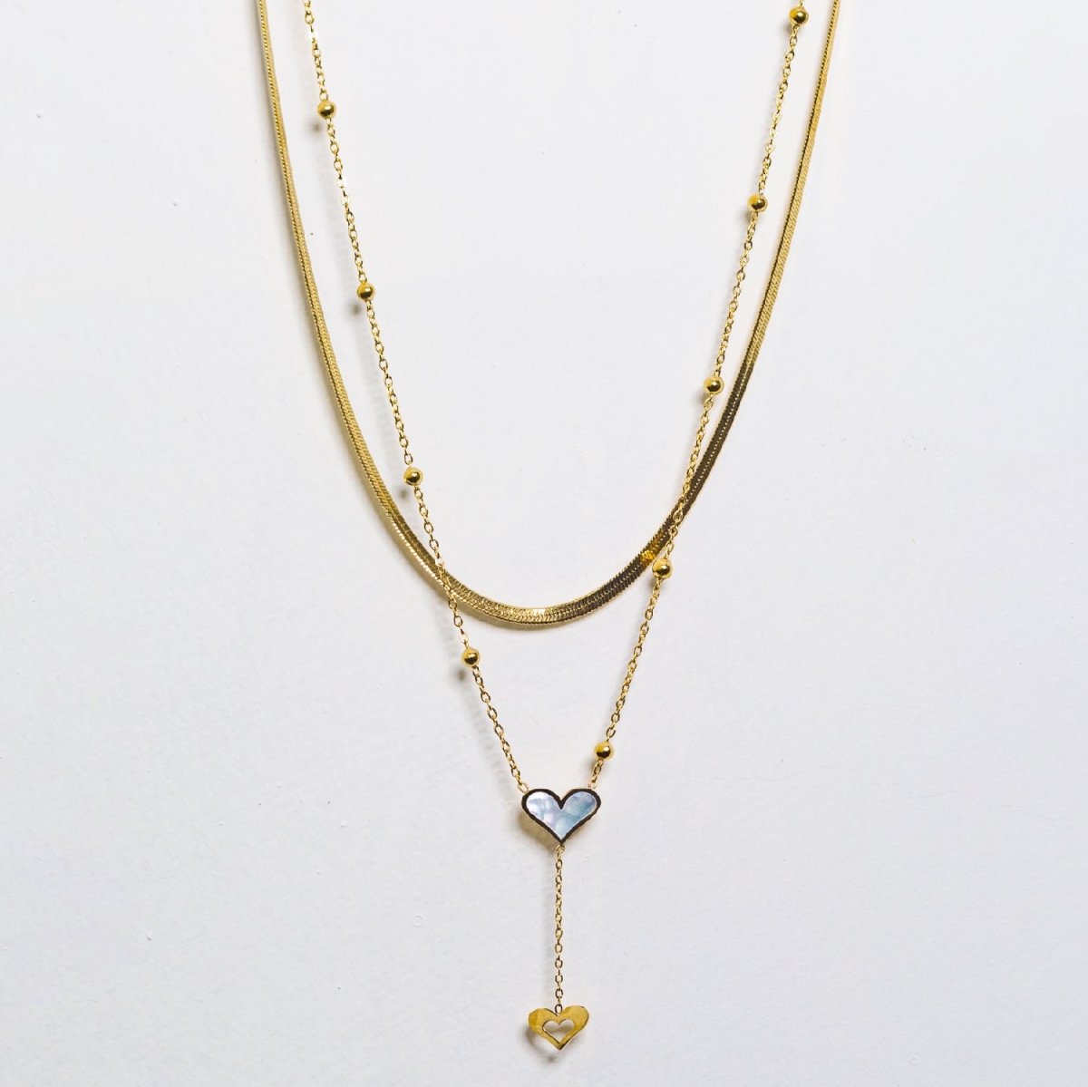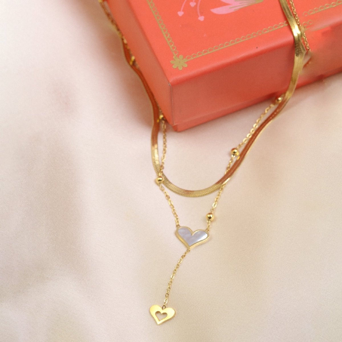 Artklim Gold Plated Double Layered Heart Pendant Necklace