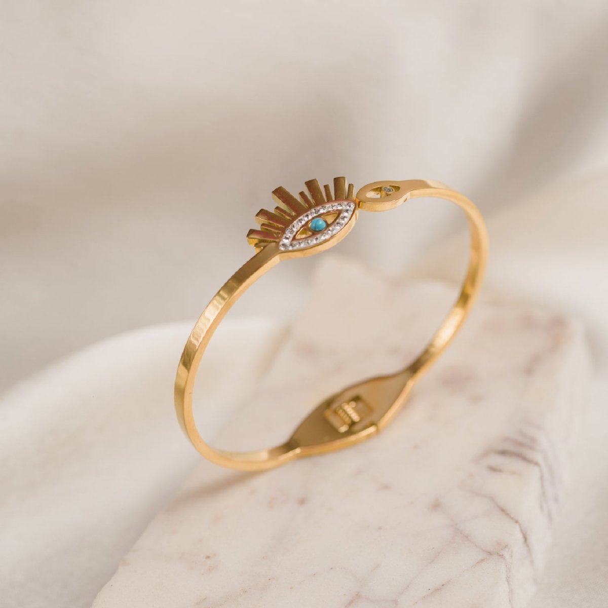Artklim Gold Plated Evil Eye Bangle Bracelet