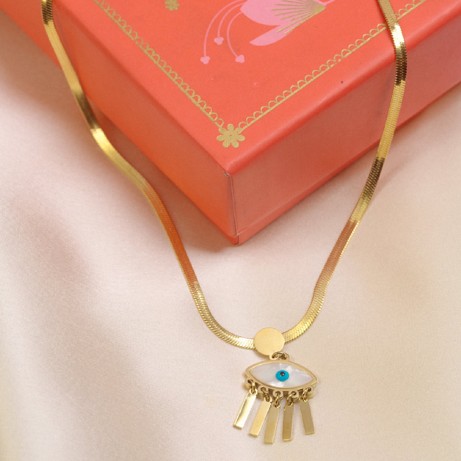 Whether as a bold statement piece or a meaningful gift, this evil eye necklace infuses your collection with timeless elegance and positive energy. Discover the magic of gold plated jewellery—order yours today!