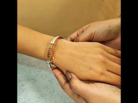 This finely crafted bracelet features a sleek gold-plated bangle adorned with delicate, intricately designed charms that exude timeless charm.