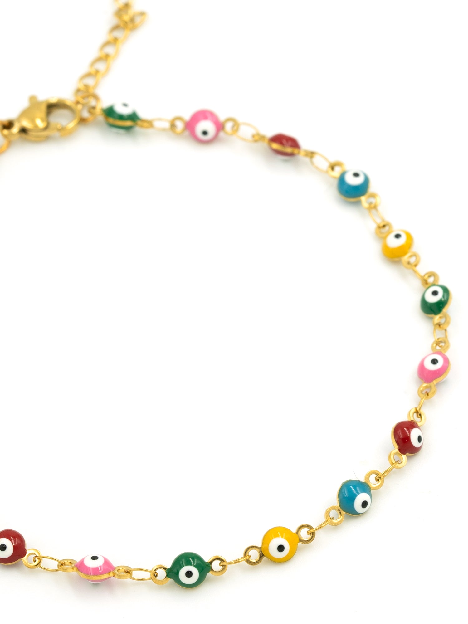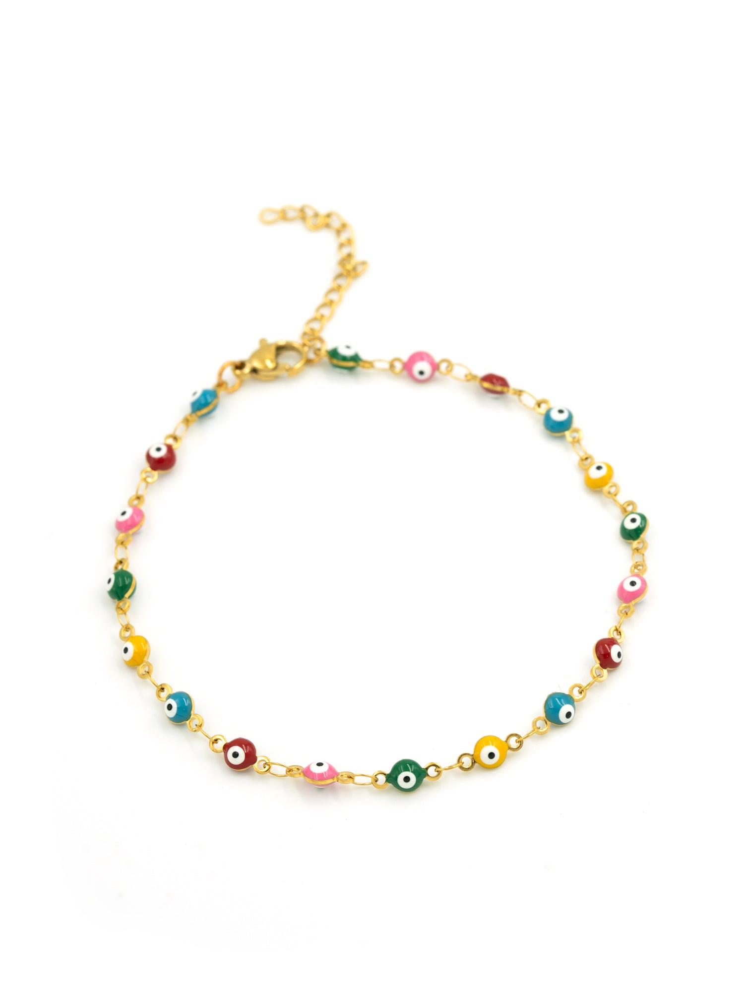 Artklim Gold Plated Multicolor Evil Eye Beads Anti Tarnish Anklet