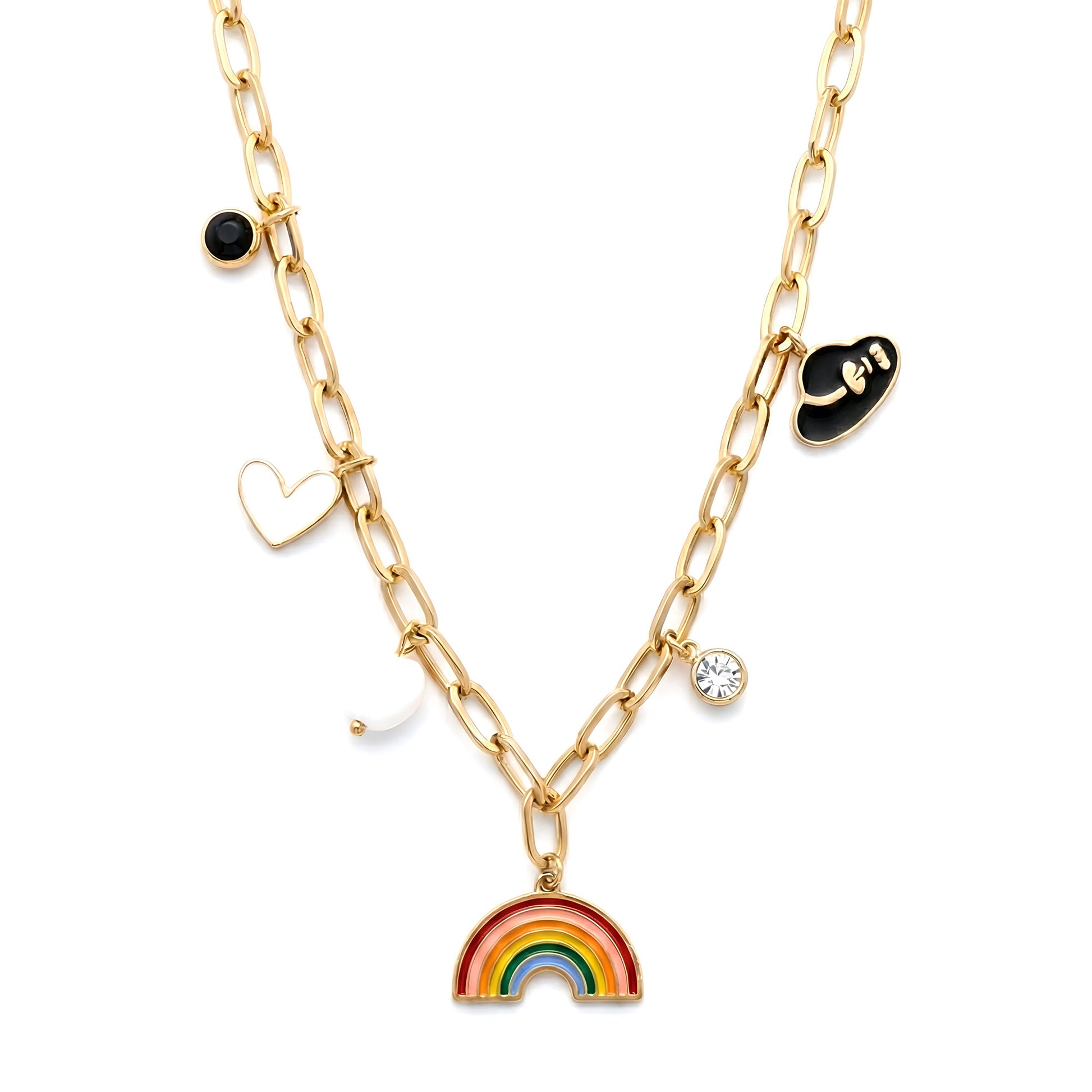 Artklim Gold Plated Rainbow Charm Chain Pendant Necklace