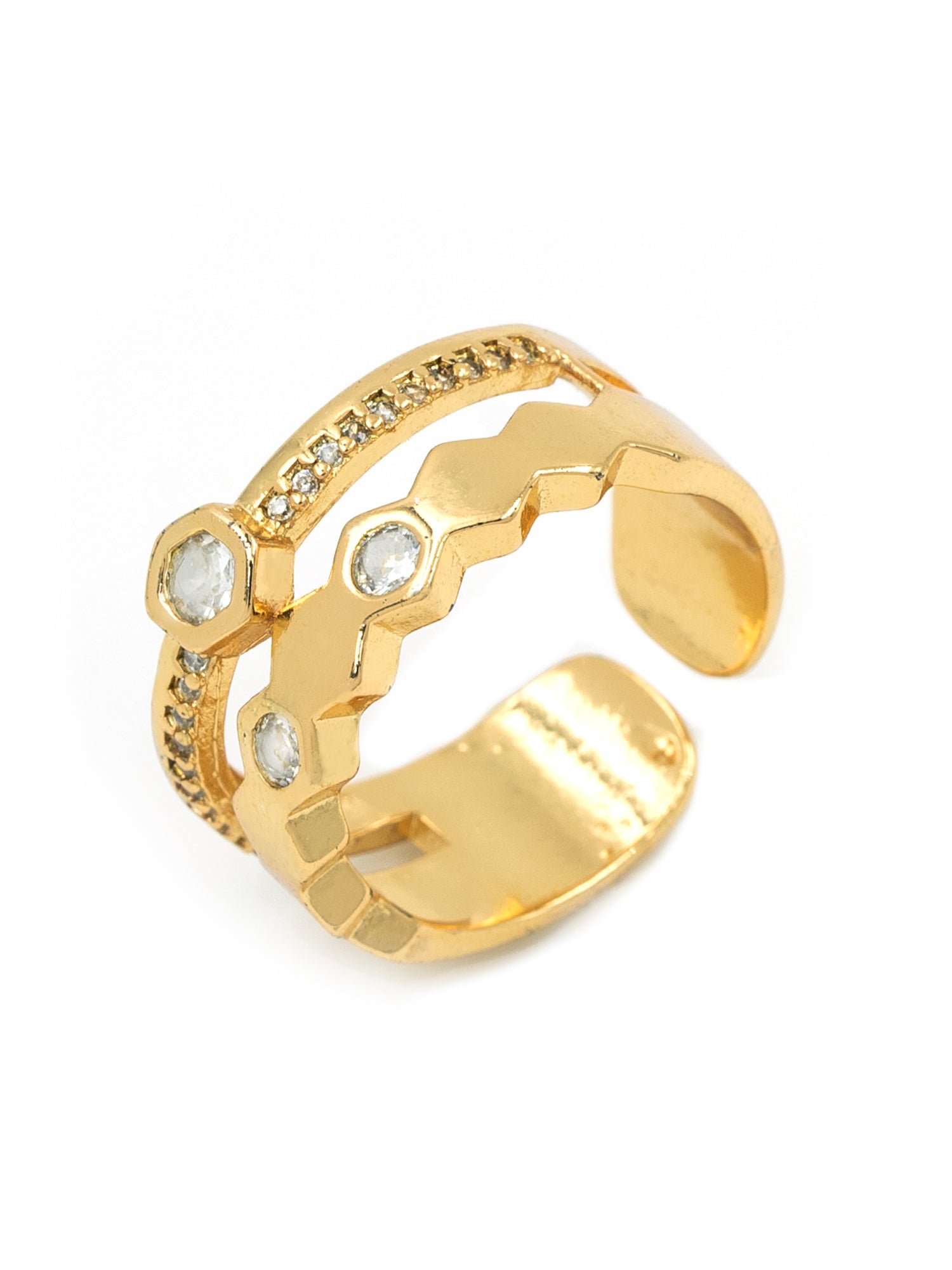 Add a touch of elegance to your look with this beautifully crafted designer ring. It features high-quality stones set in durable, skin-friendly metal.