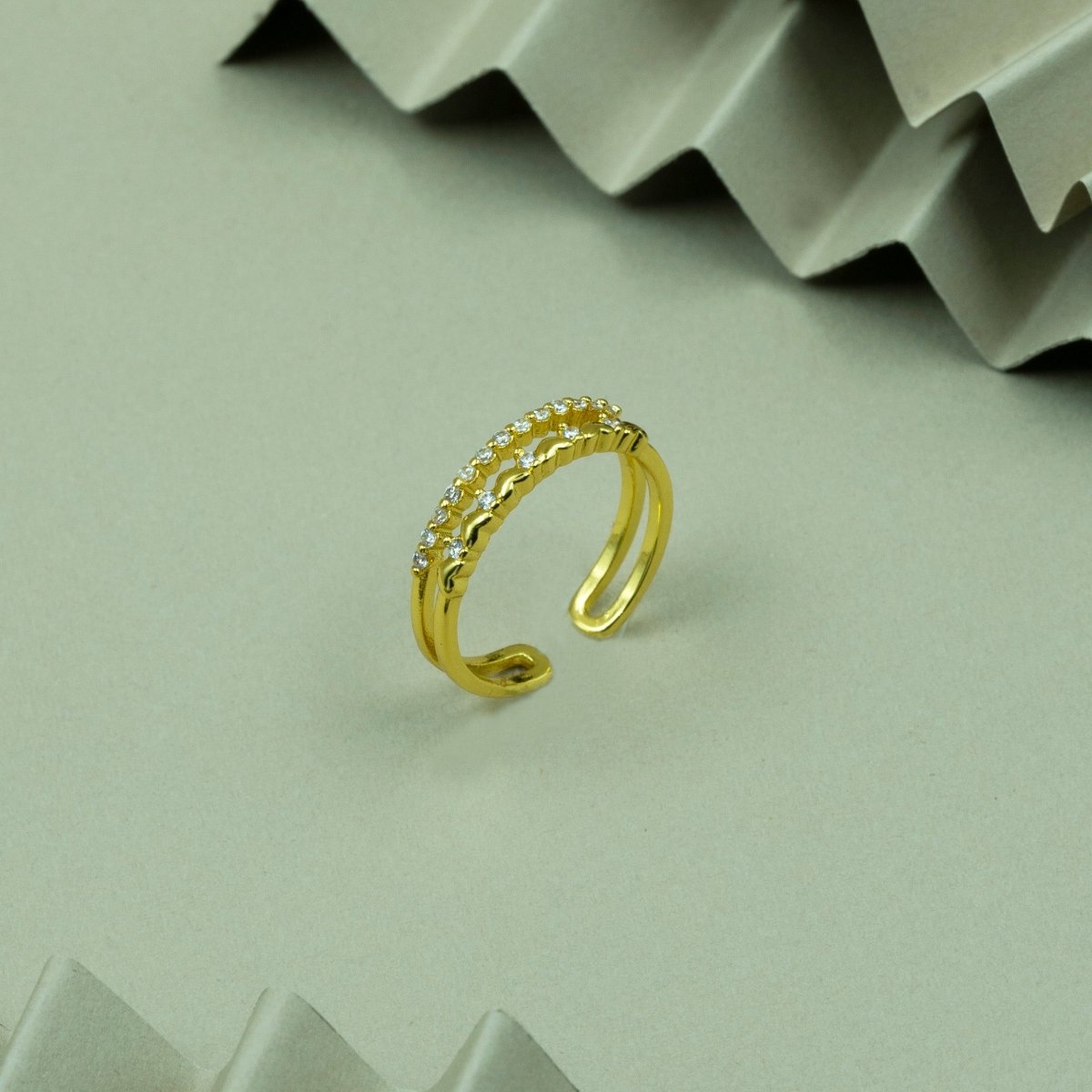 Artklim Gold Plated Stone Studded Adjustable Ring
