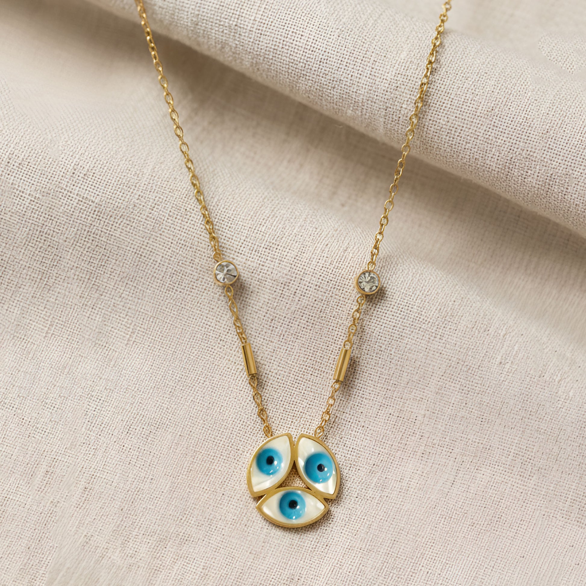 Artklim Gold Plated Triple Evil Eye Pendant Necklace