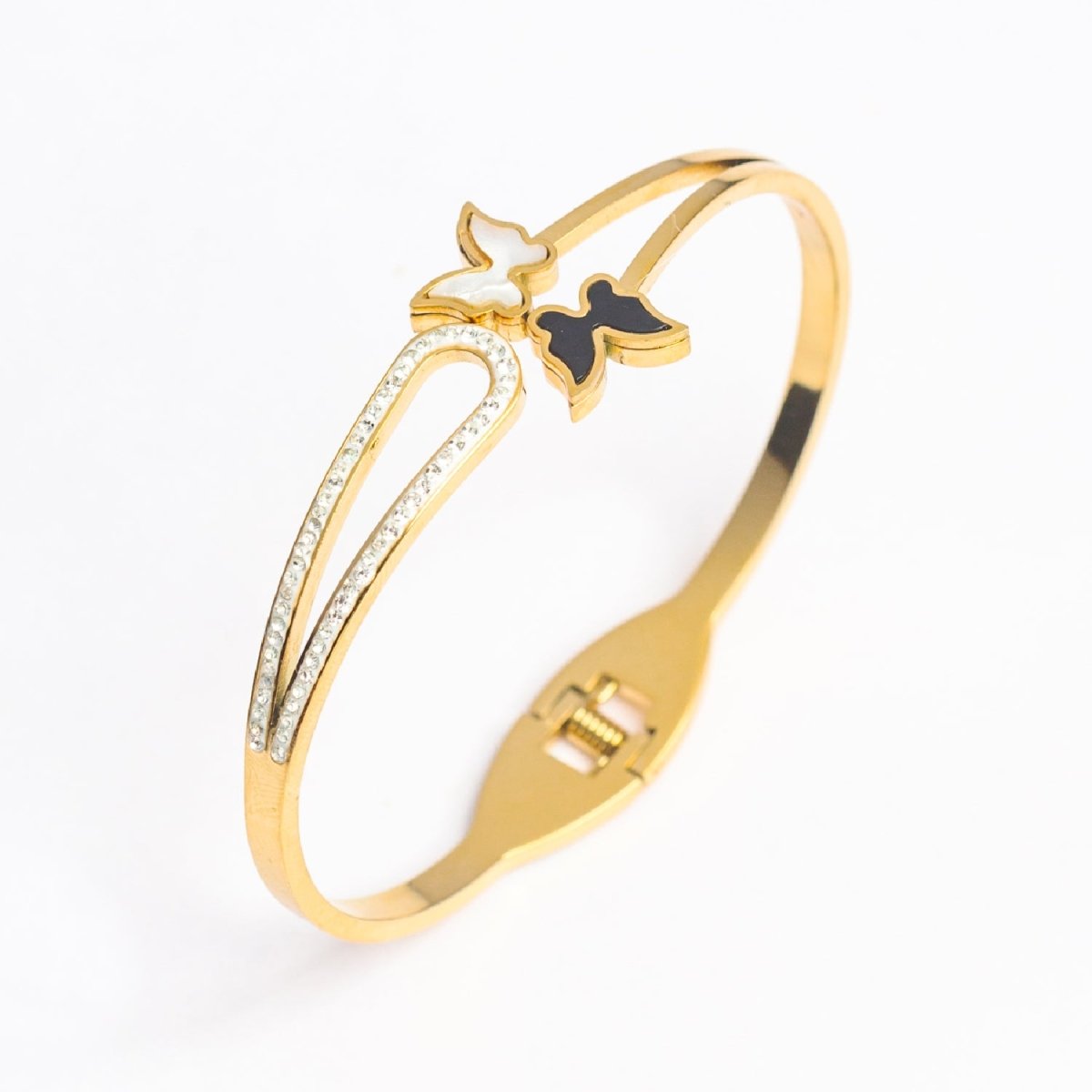 Artklim Gold Plated White And Black Butterfly Bangle Bracelet