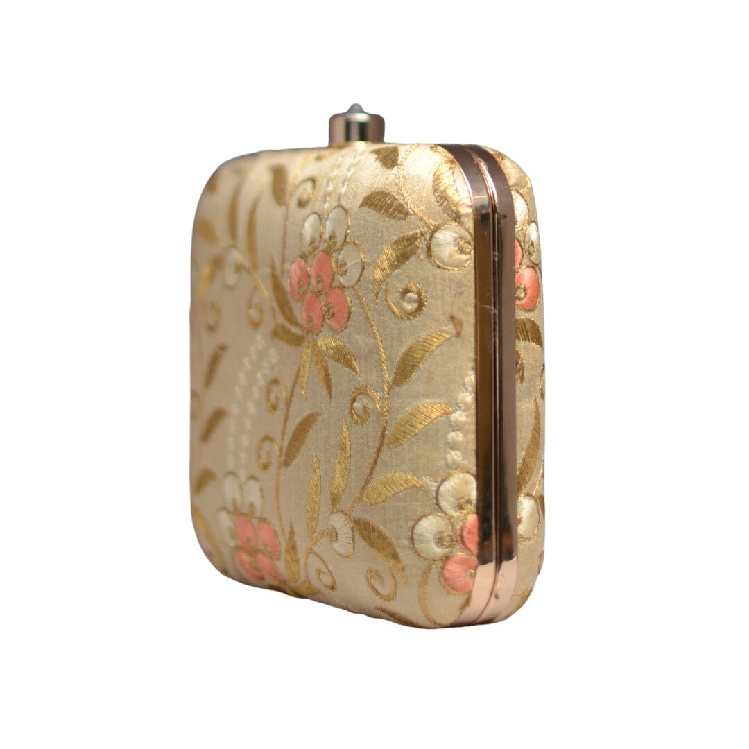 Artklim Golden Embroidery Party Clutch