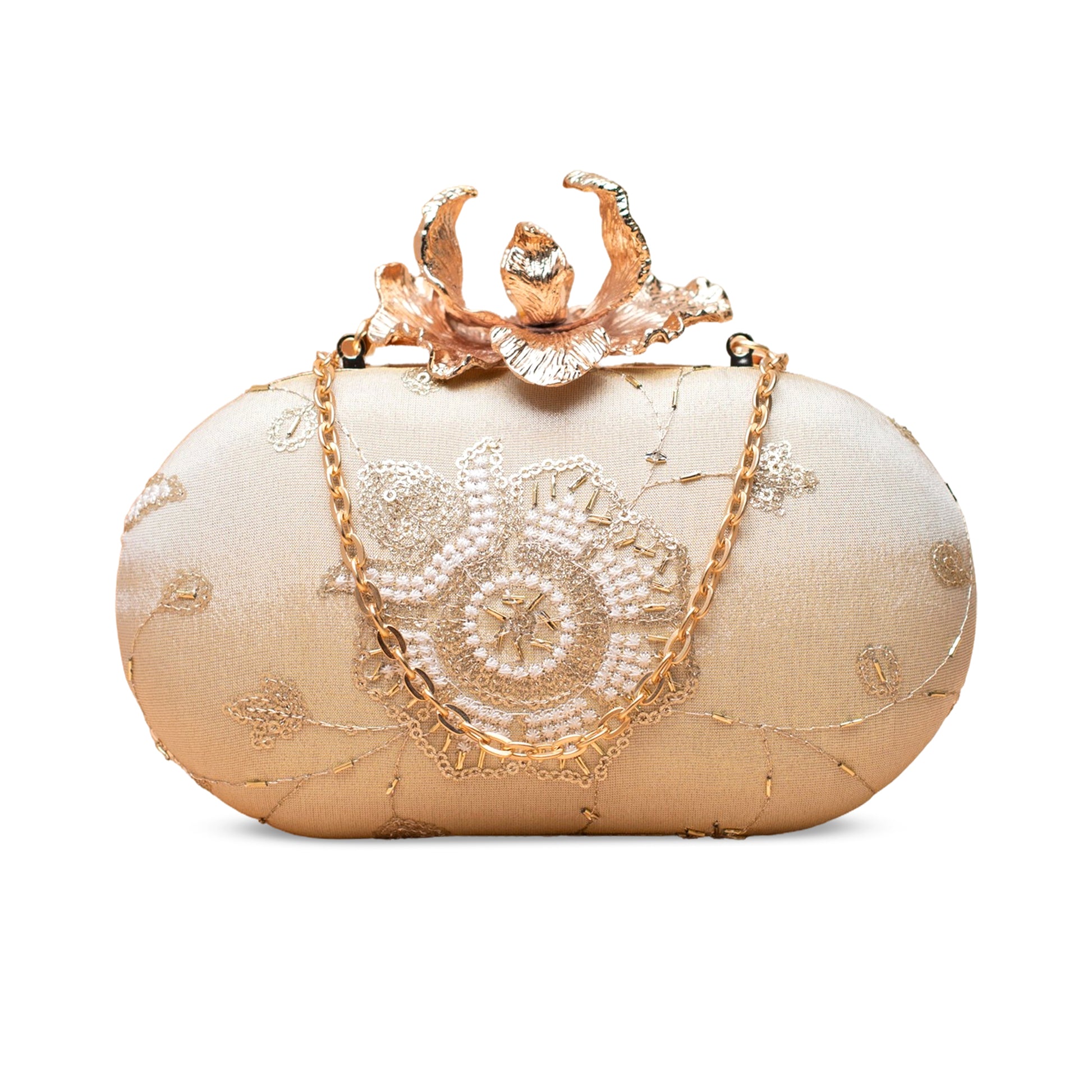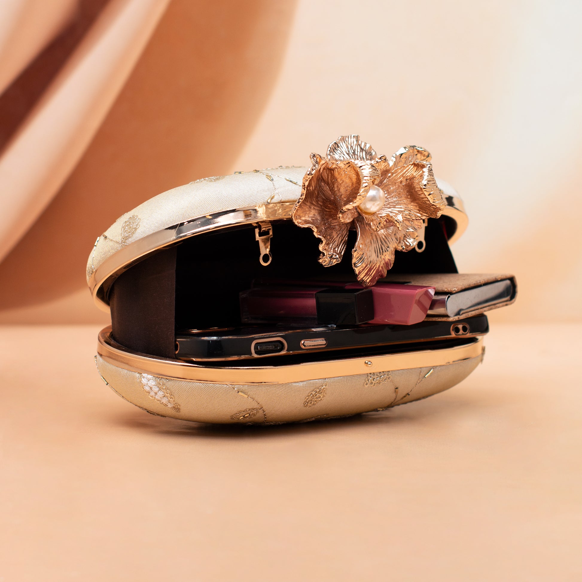 Artklim Golden Floral Embroidered Embroidered Clutch