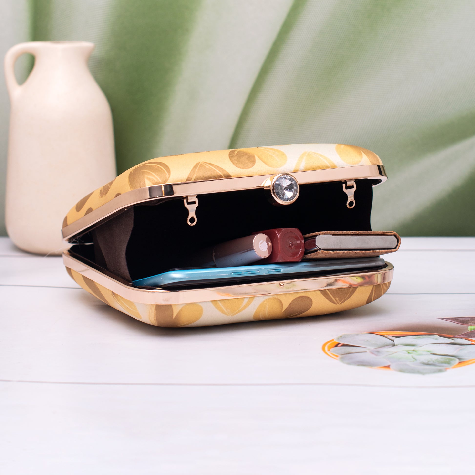 Add a burst of personality to every outing with these handcrafted clutches. Designed to blend fashion and art, each piece is a mini canvas—printed with vibrant illustrations, finished with a luxe hard-case body, and accented with a gleaming gold clasp and chain