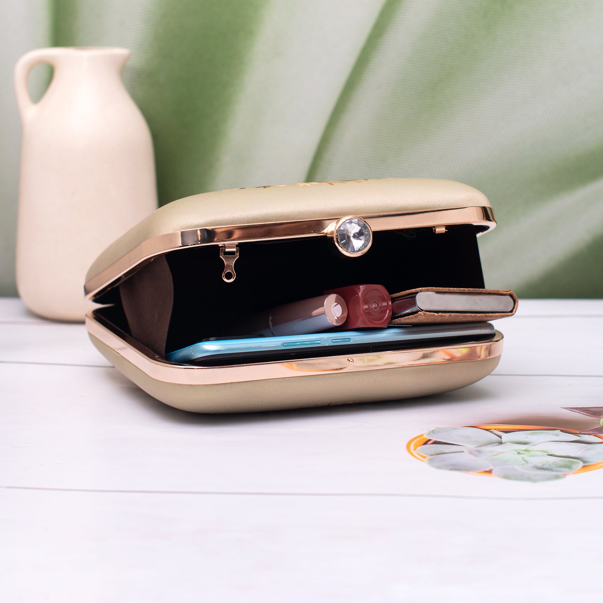 Add a burst of personality to every outing with these handcrafted clutches. Designed to blend fashion and art, each piece is a mini canvas—printed with vibrant illustrations, finished with a luxe hard-case body, and accented with a gleaming gold clasp and chain