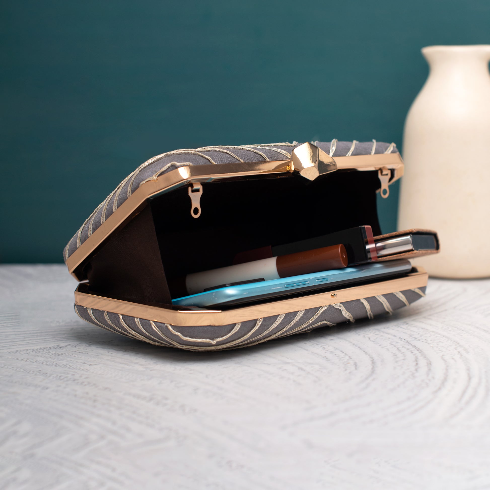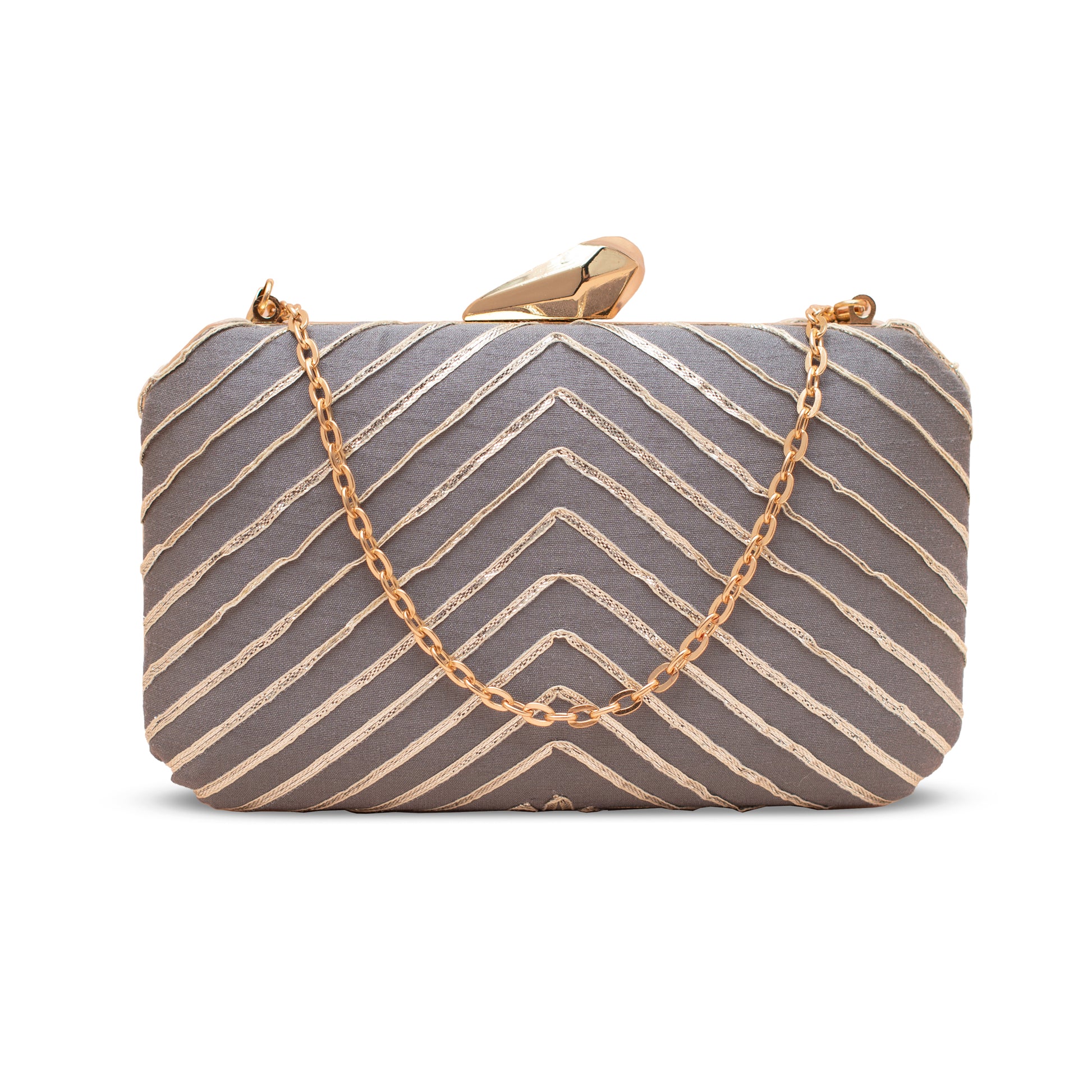 Artklim Gota Patti Grey Chevron Glam Clutch