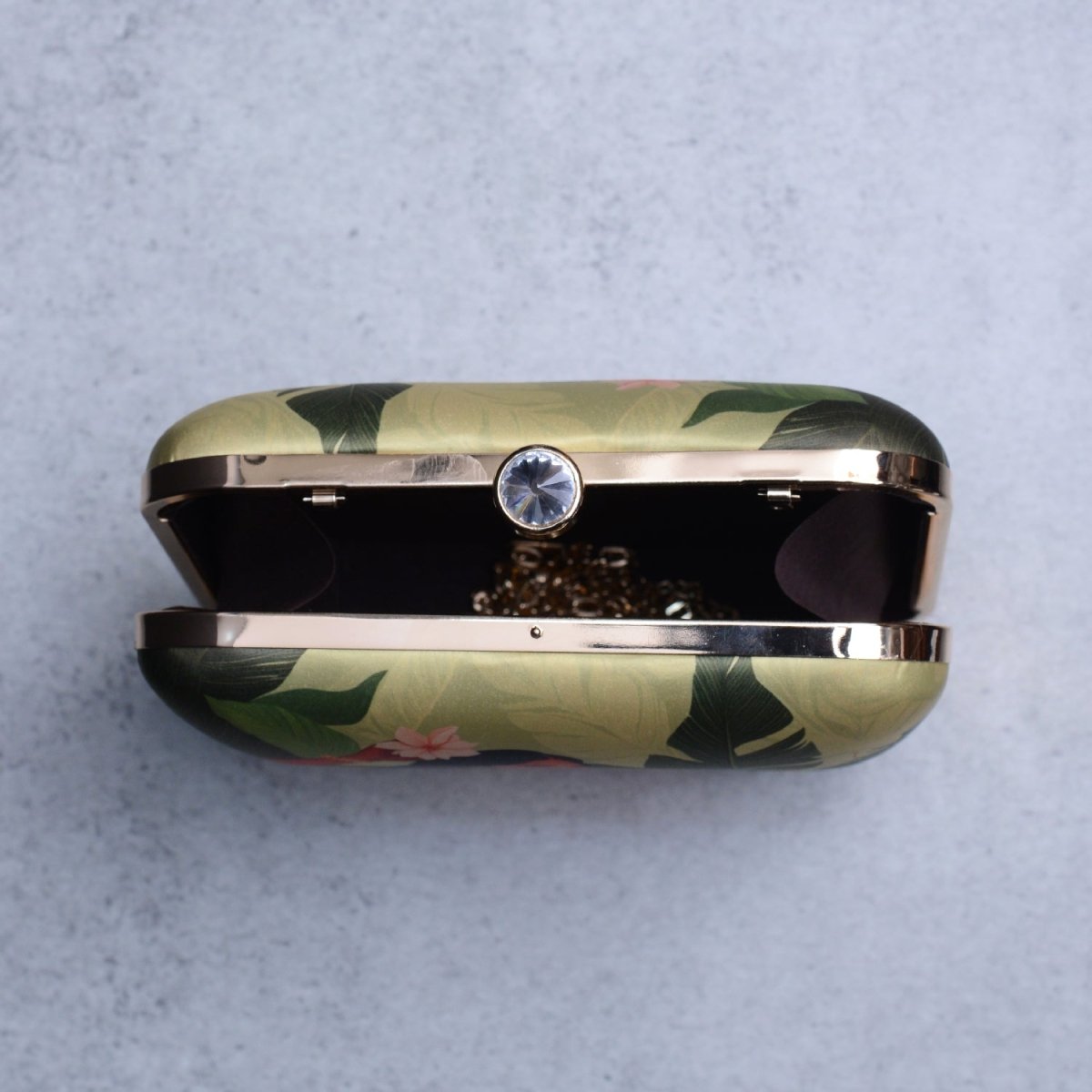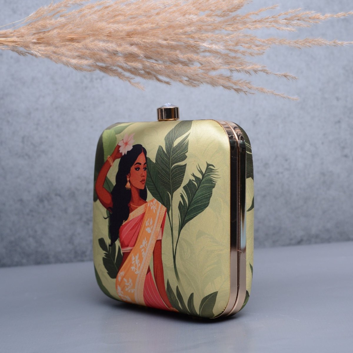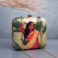 Artklim Green Based Indian Girl Portrait Printed Clutch