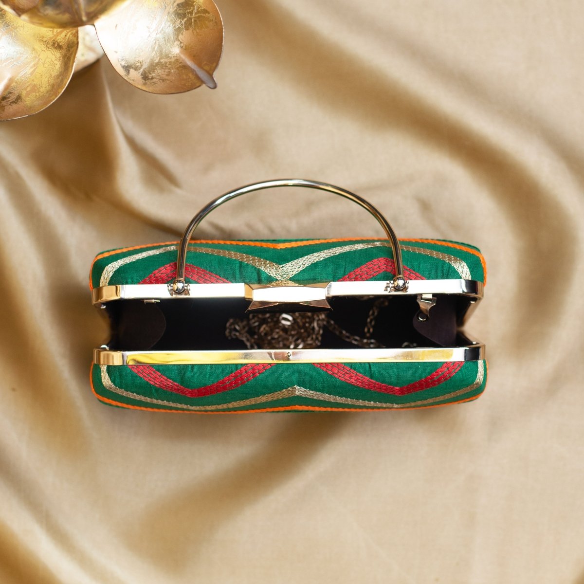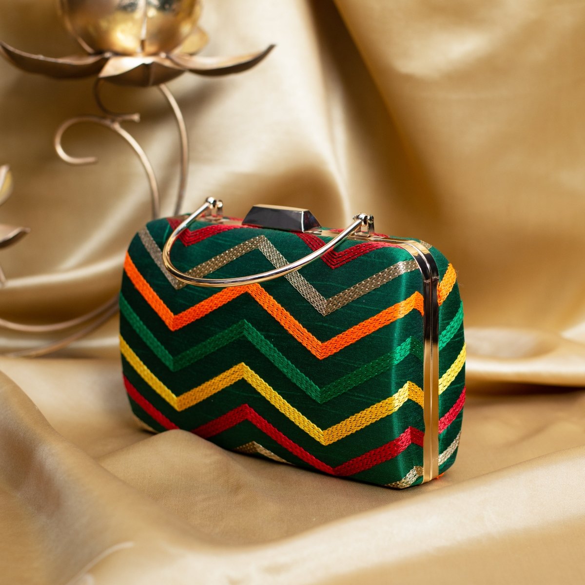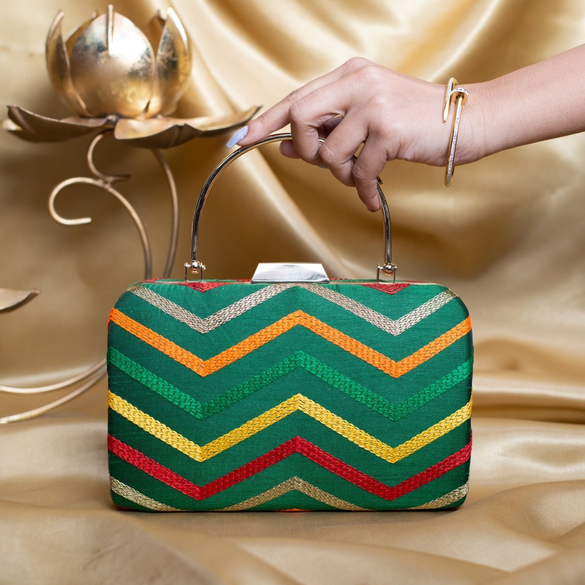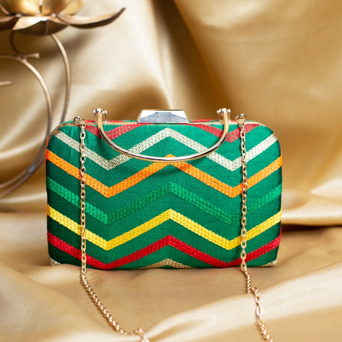 Artklim Green Based Multicolored Threadwork Embroidery Clutch