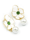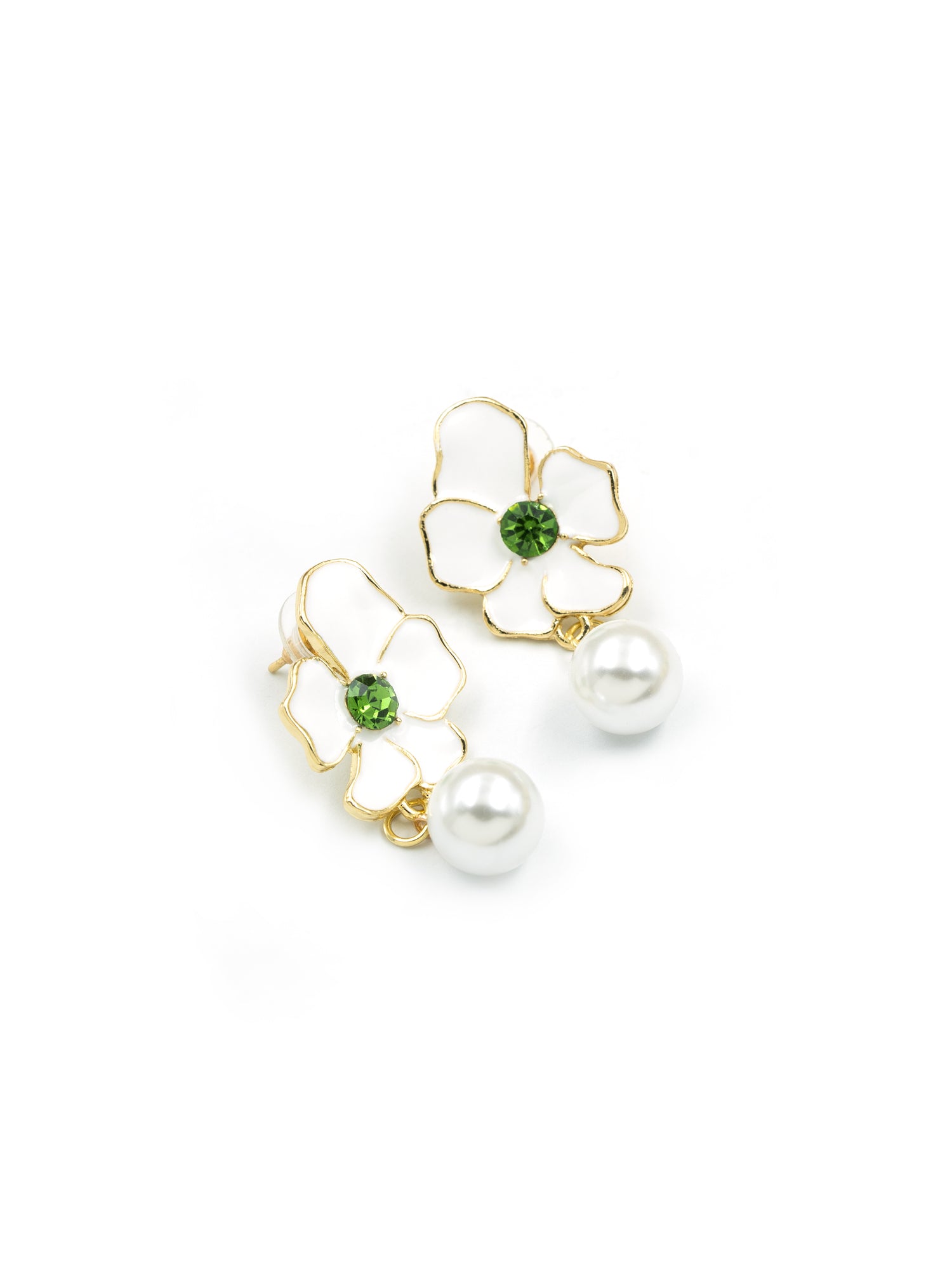 Artklim Green Center White Flower Anti Tarnish Earrings