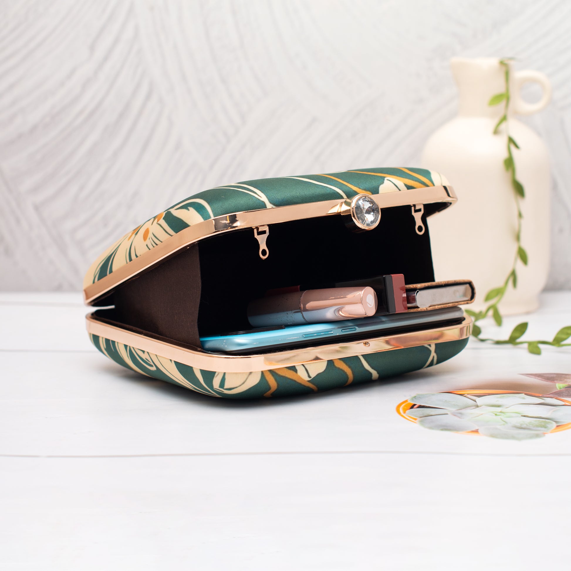 Add a burst of personality to every outing with these handcrafted clutches. Designed to blend fashion and art, each piece is a mini canvas—printed with vibrant illustrations, finished with a luxe hard-case body, and accented with a gleaming gold clasp and chain