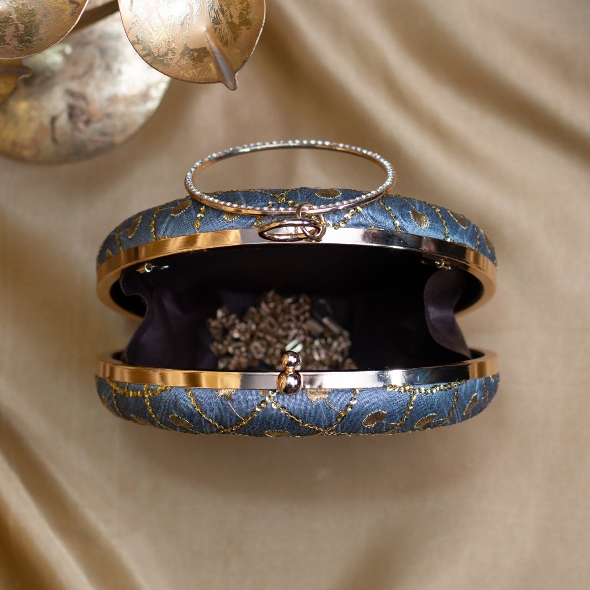 Artklim Grey Based Golden Sequins Embroidery Clutch