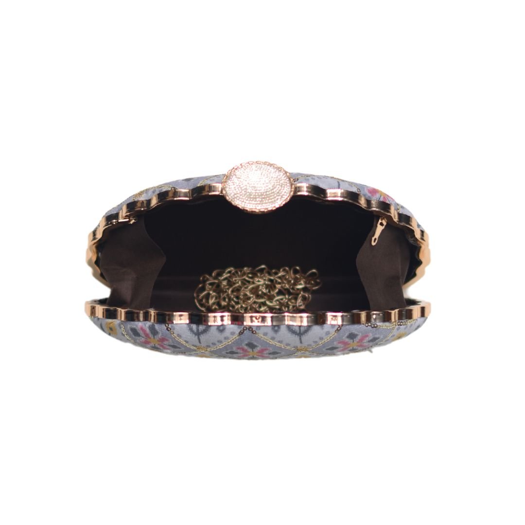 Artklim Grey Sequins Embroidered D-shape Clutch
