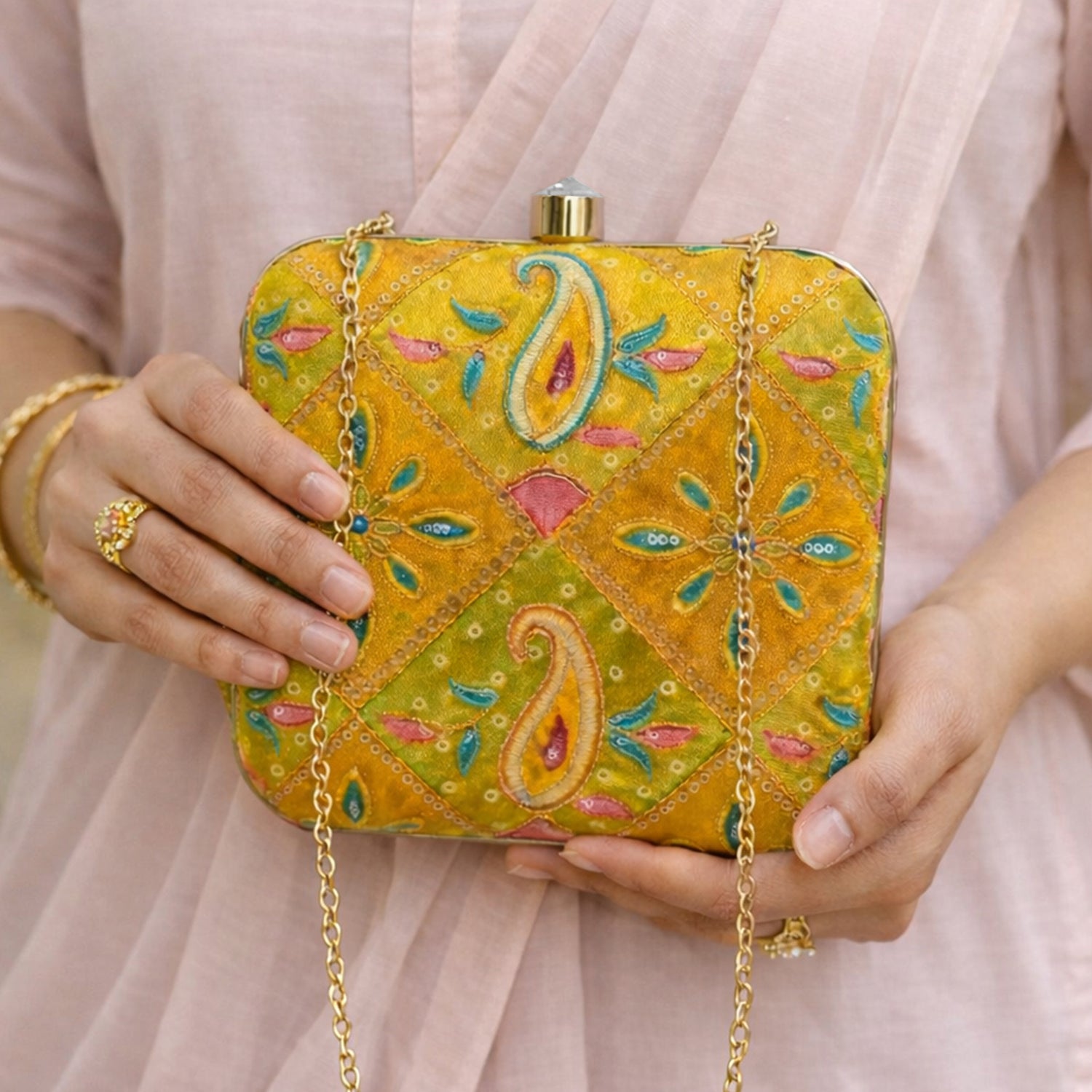 Artklim Haldi Special Yellow Ethnic Embroidered Clutch