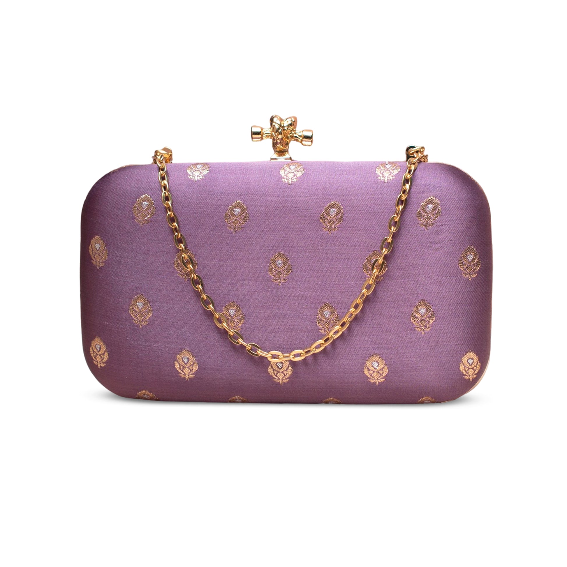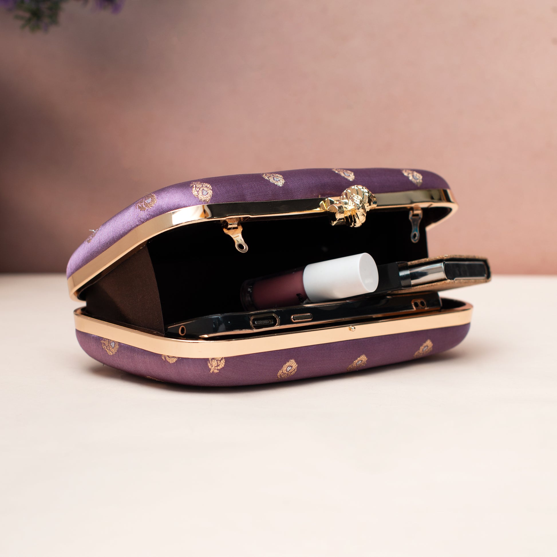 Artklim Lavender Royale Gold-Motif Embroidered Clutch