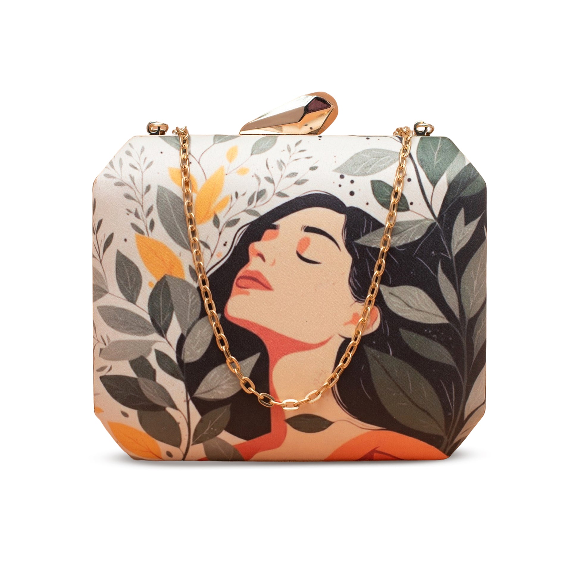 Artklim Leaf Serenity Woman Portrait Printed Clutch