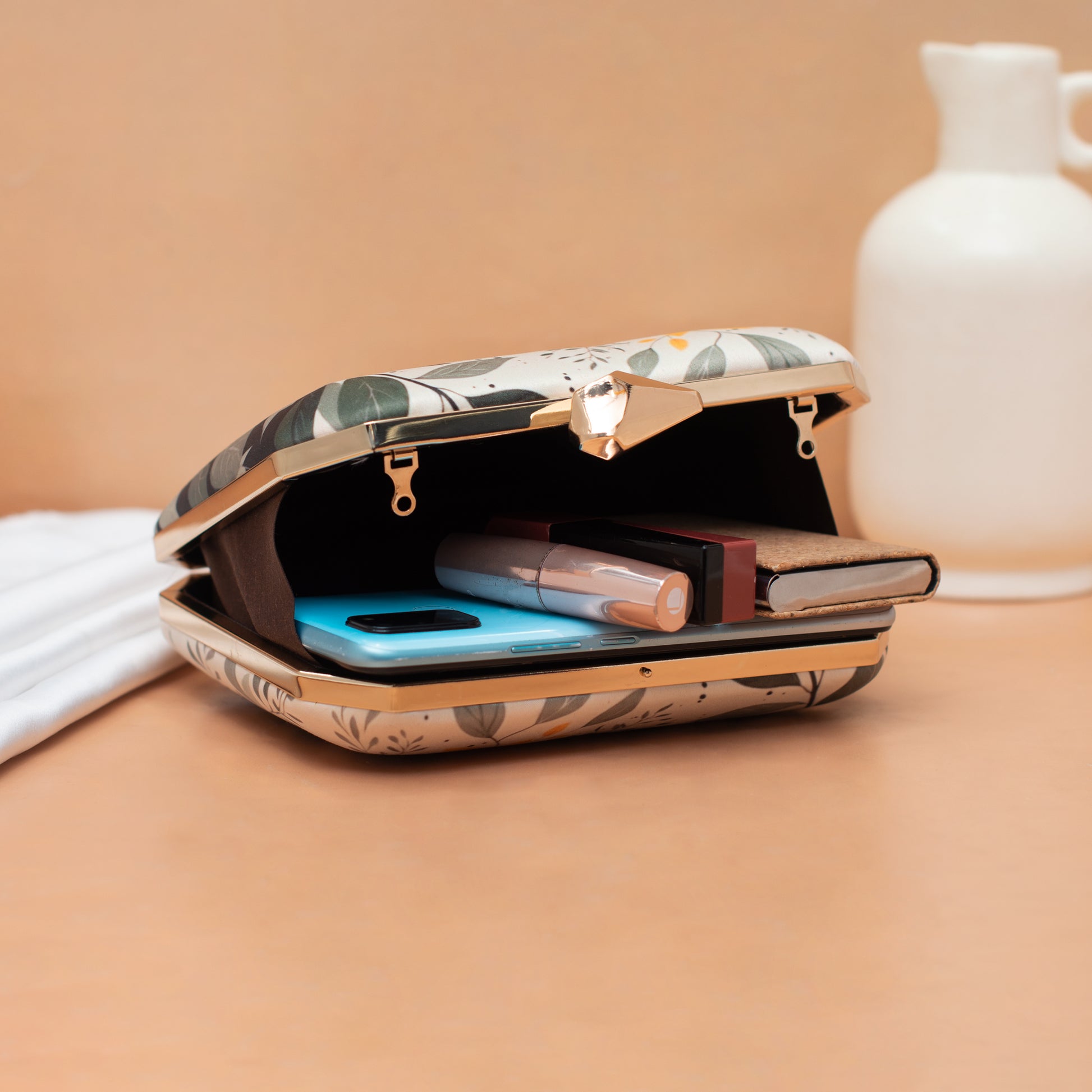 Add a burst of personality to every outing with these handcrafted clutches. Designed to blend fashion and art, each piece is a mini canvas—printed with vibrant illustrations, finished with a luxe hard-case body, and accented with a gleaming gold clasp and chain.