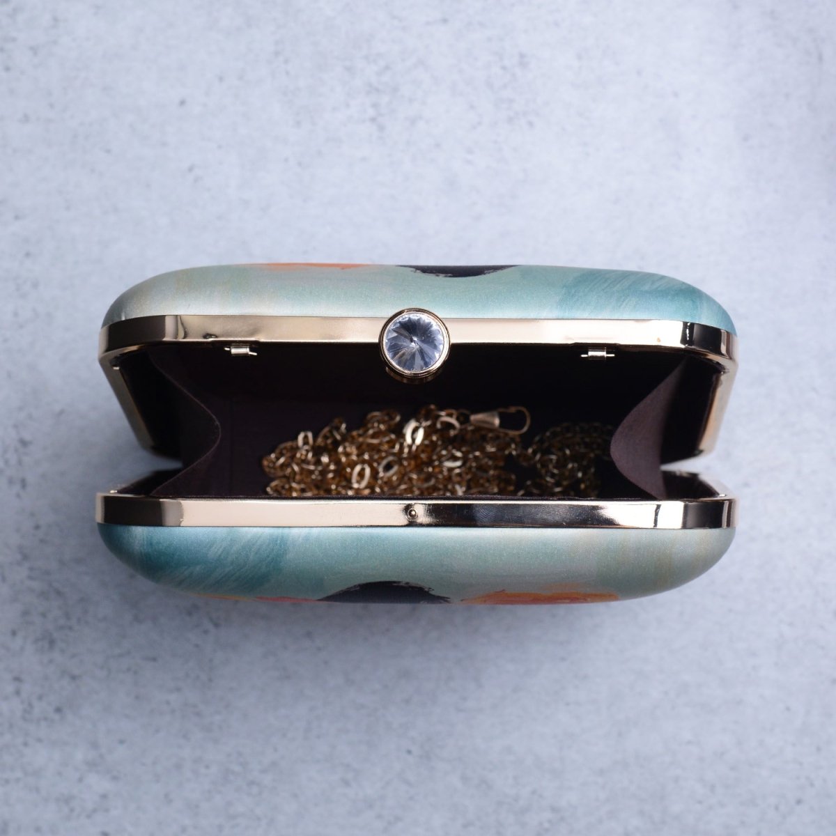 Artklim Light Blue Based Floral Girl Portrait Printed Clutch