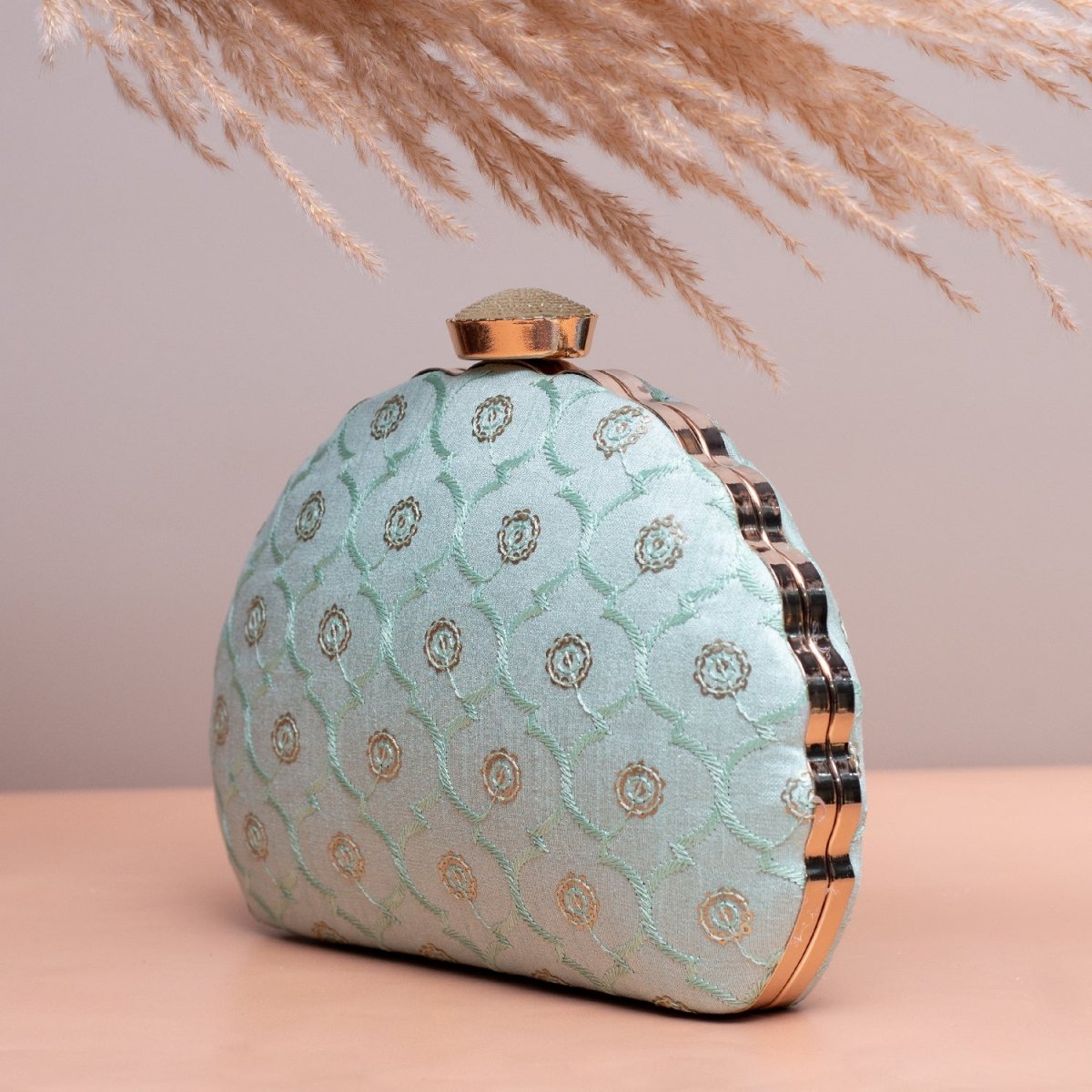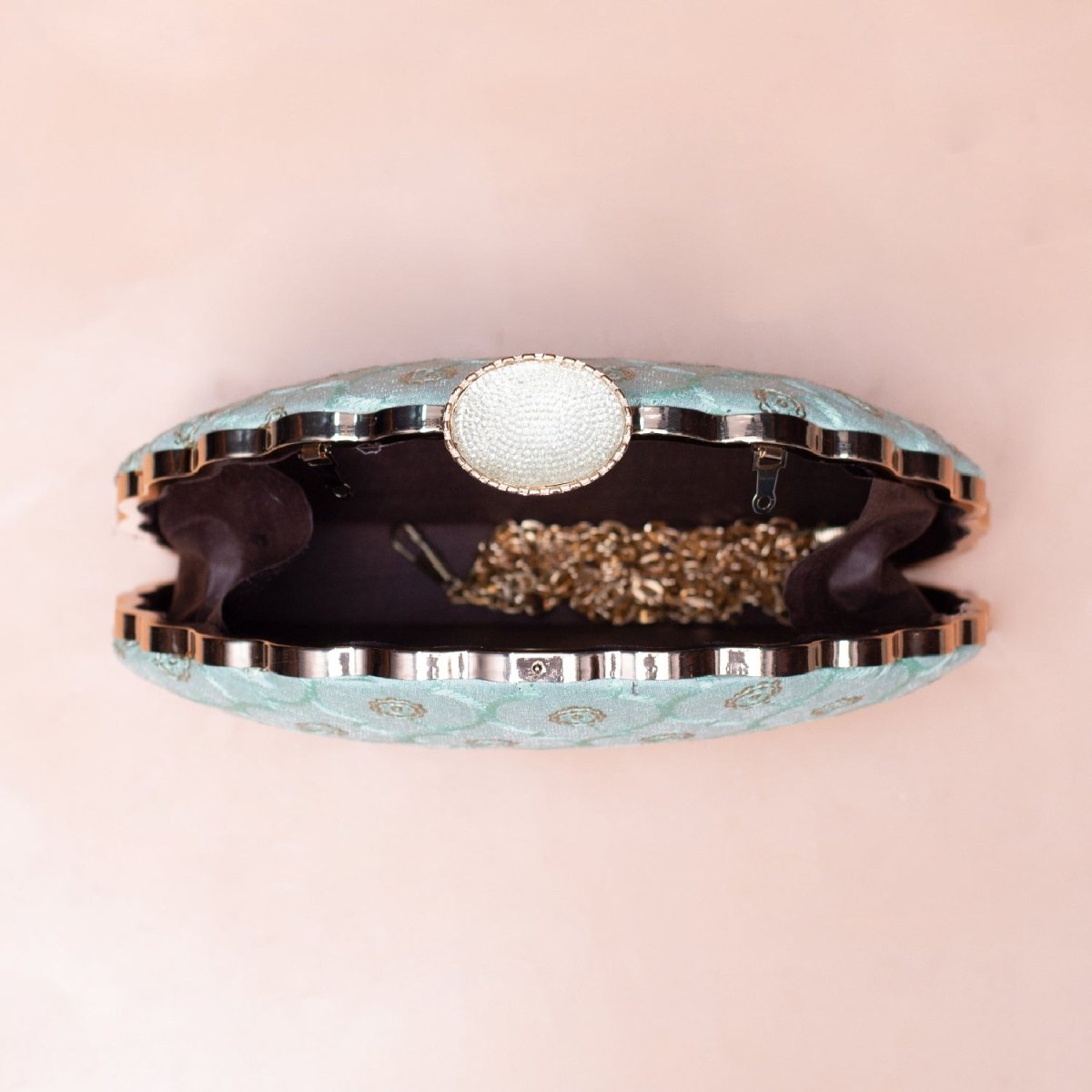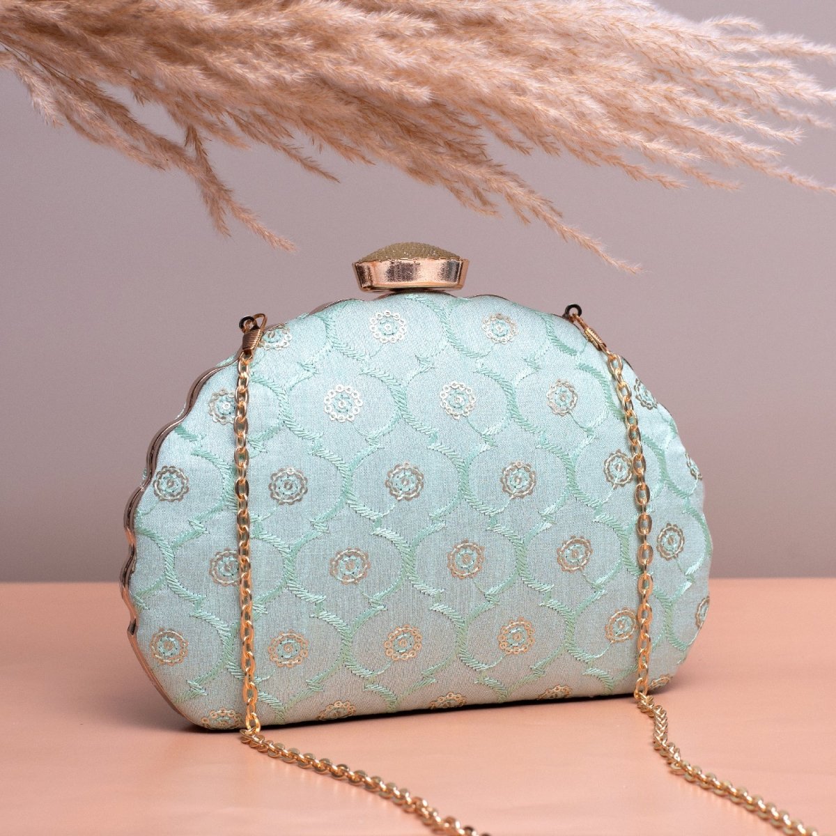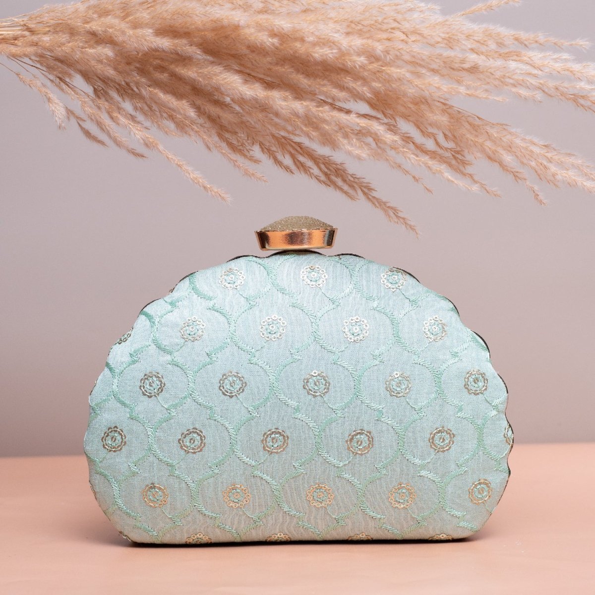 Artklim Light Blue Based Sequins Embroidery Clutch