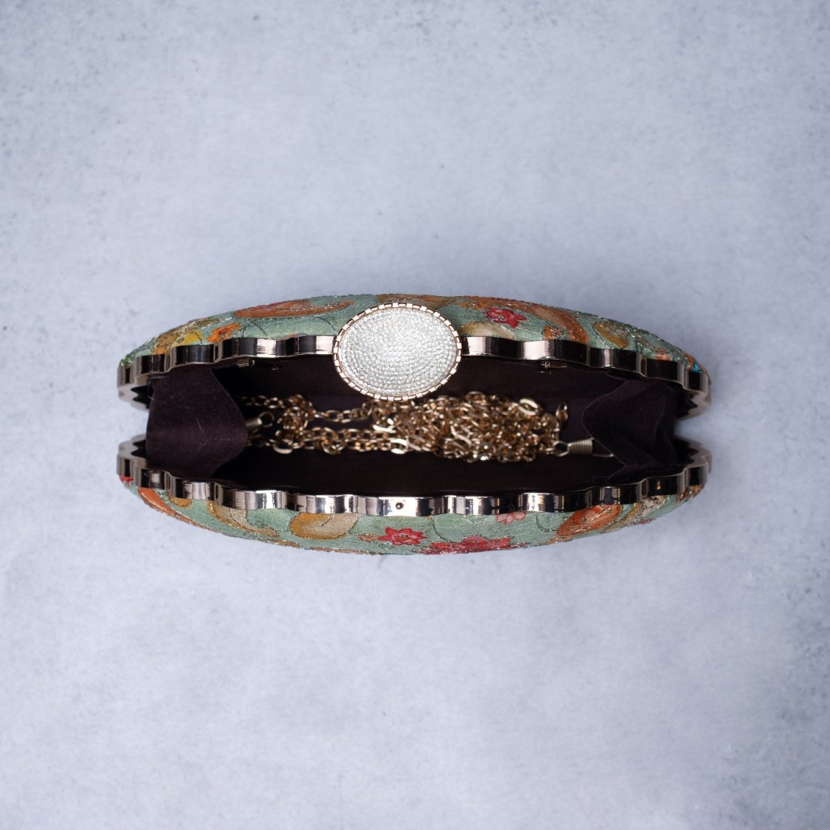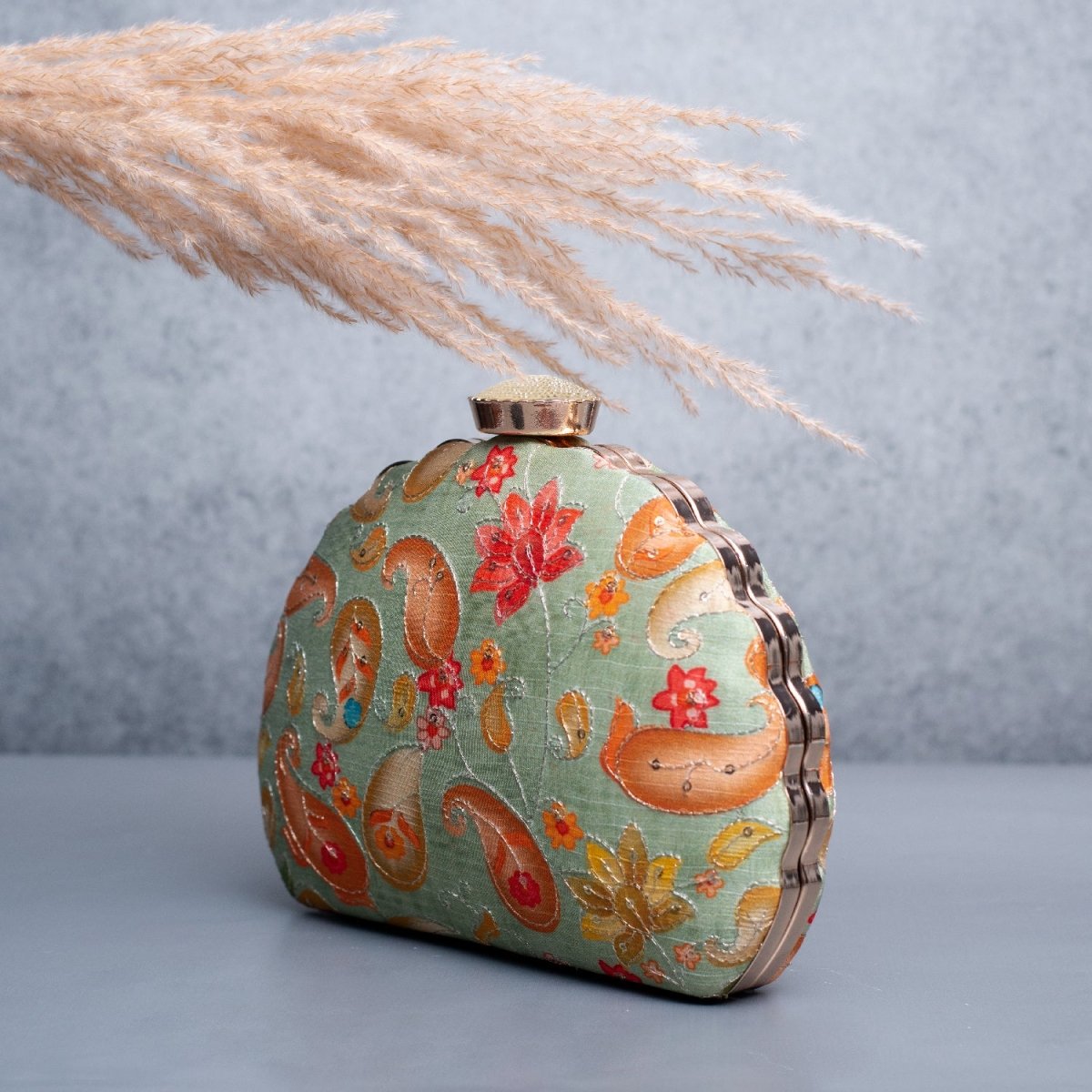 Artklim Light Green Based Yellow Pattern Printed Clutch