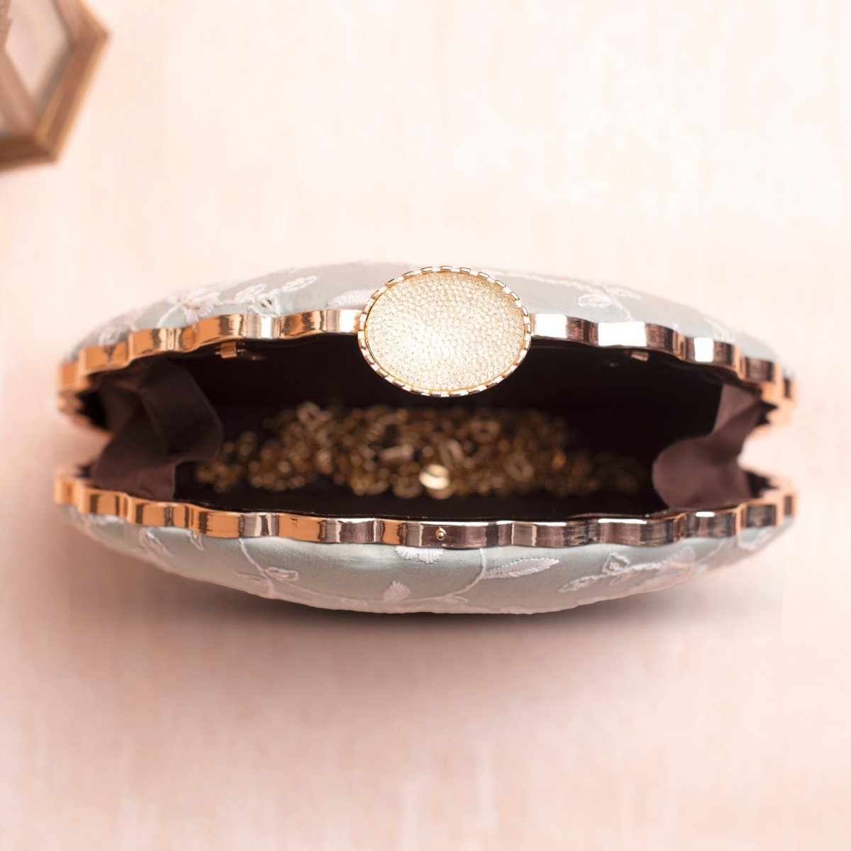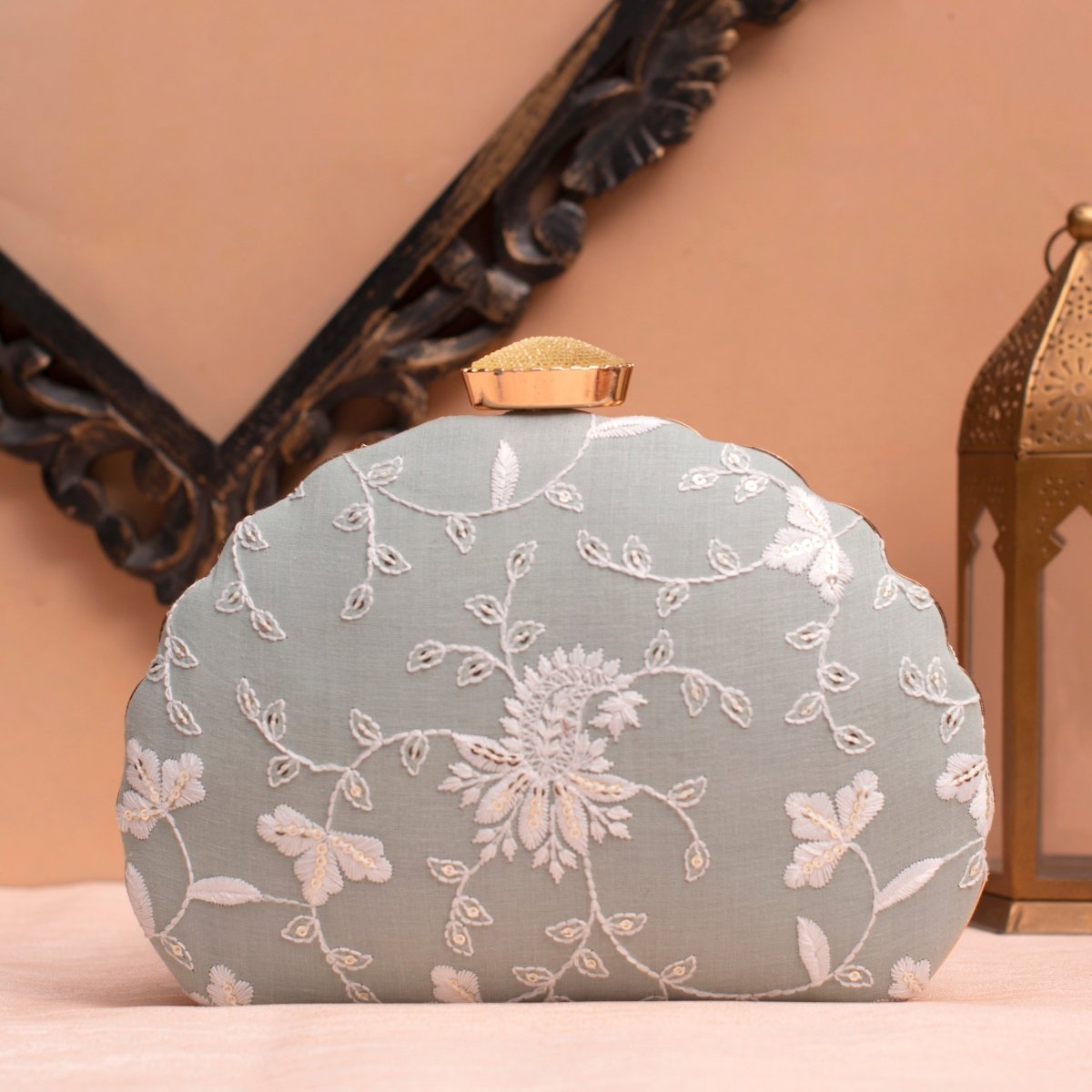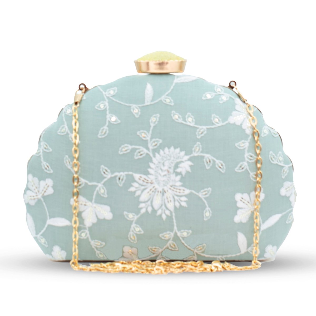 Artklim Light Mint Based White Thread Embroidery Clutch