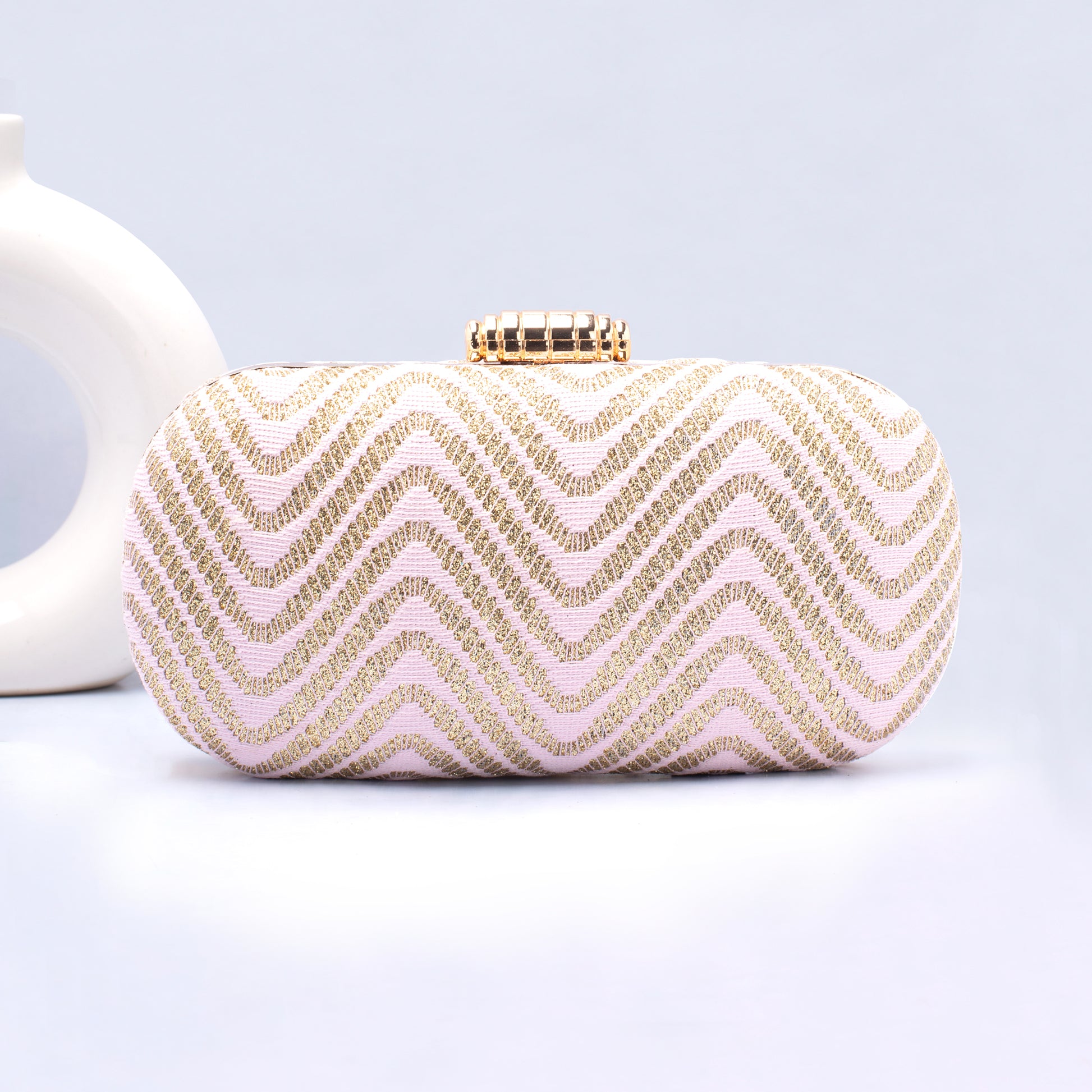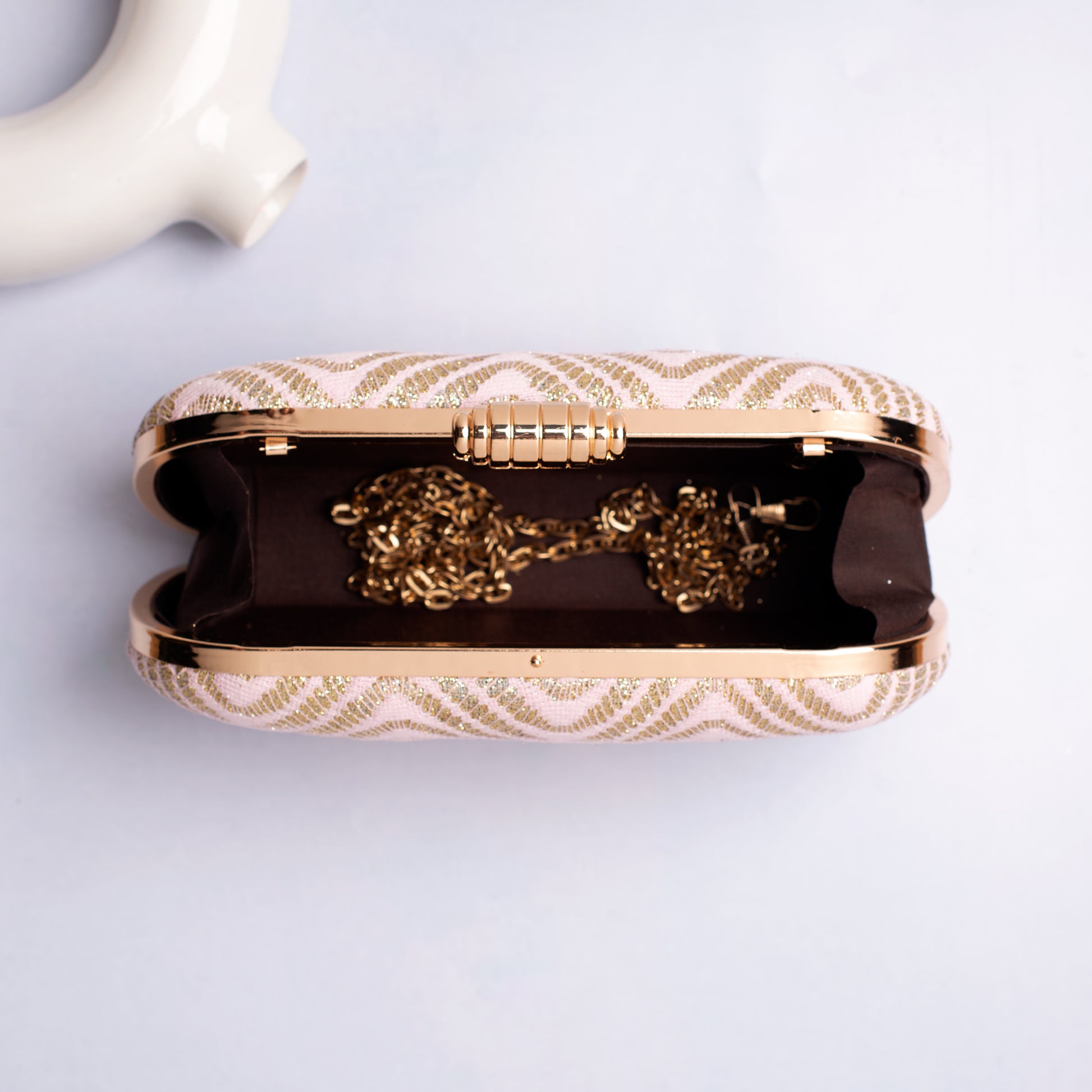 Artklim Light Pink Based Golden Sequins Embroidery Capsule Clutch
