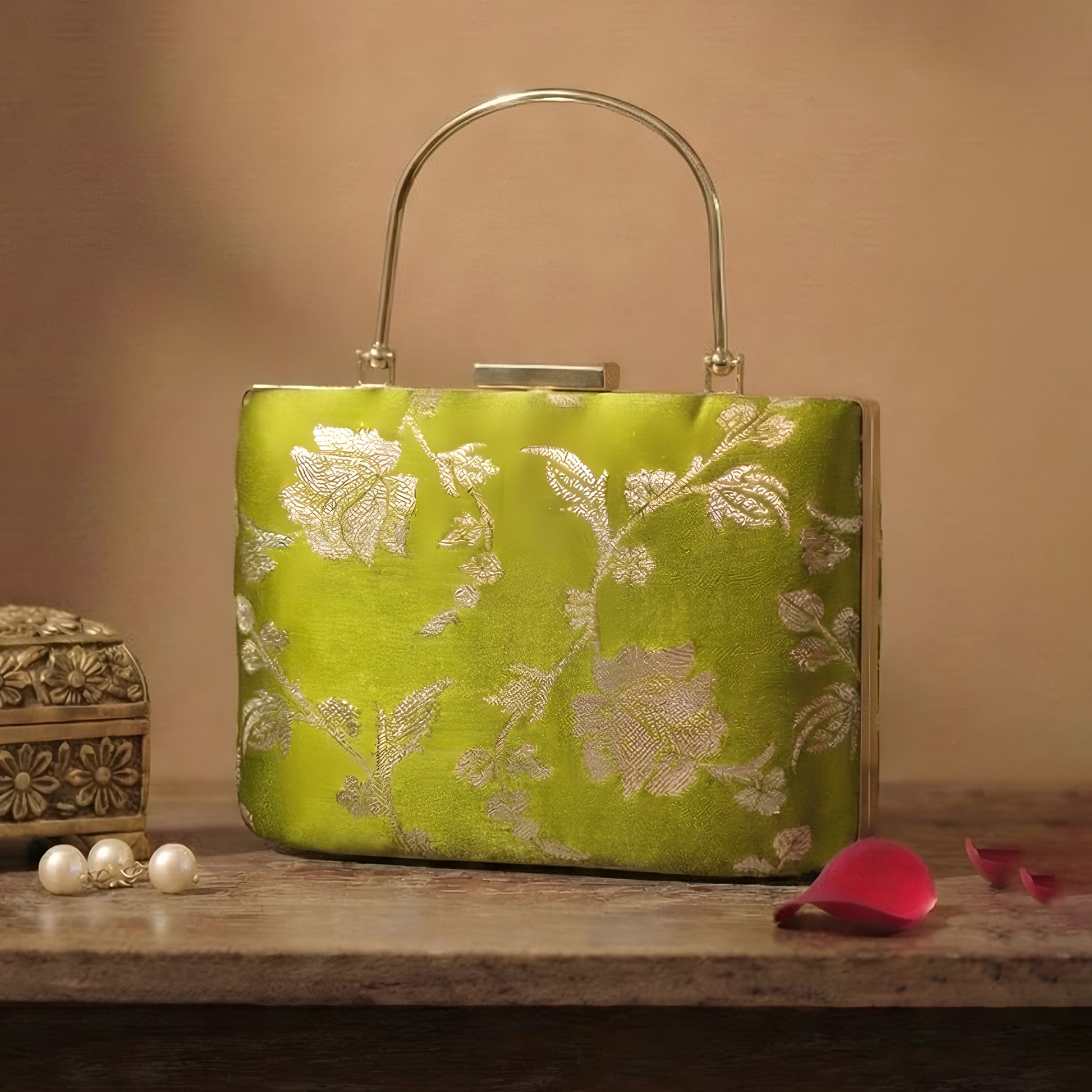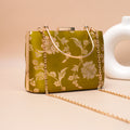 Artklim Lime Green Gold Floral Embroidered Clutch