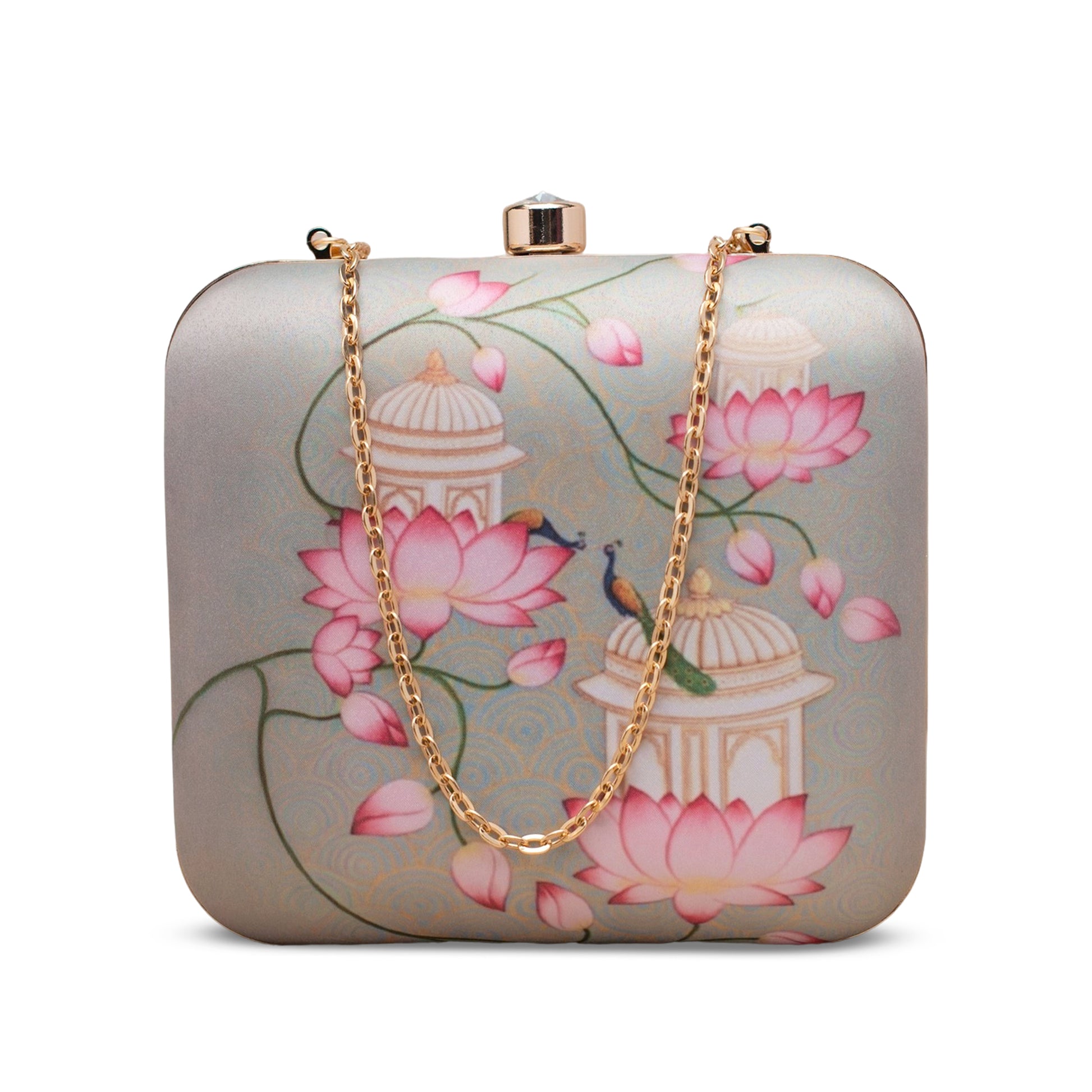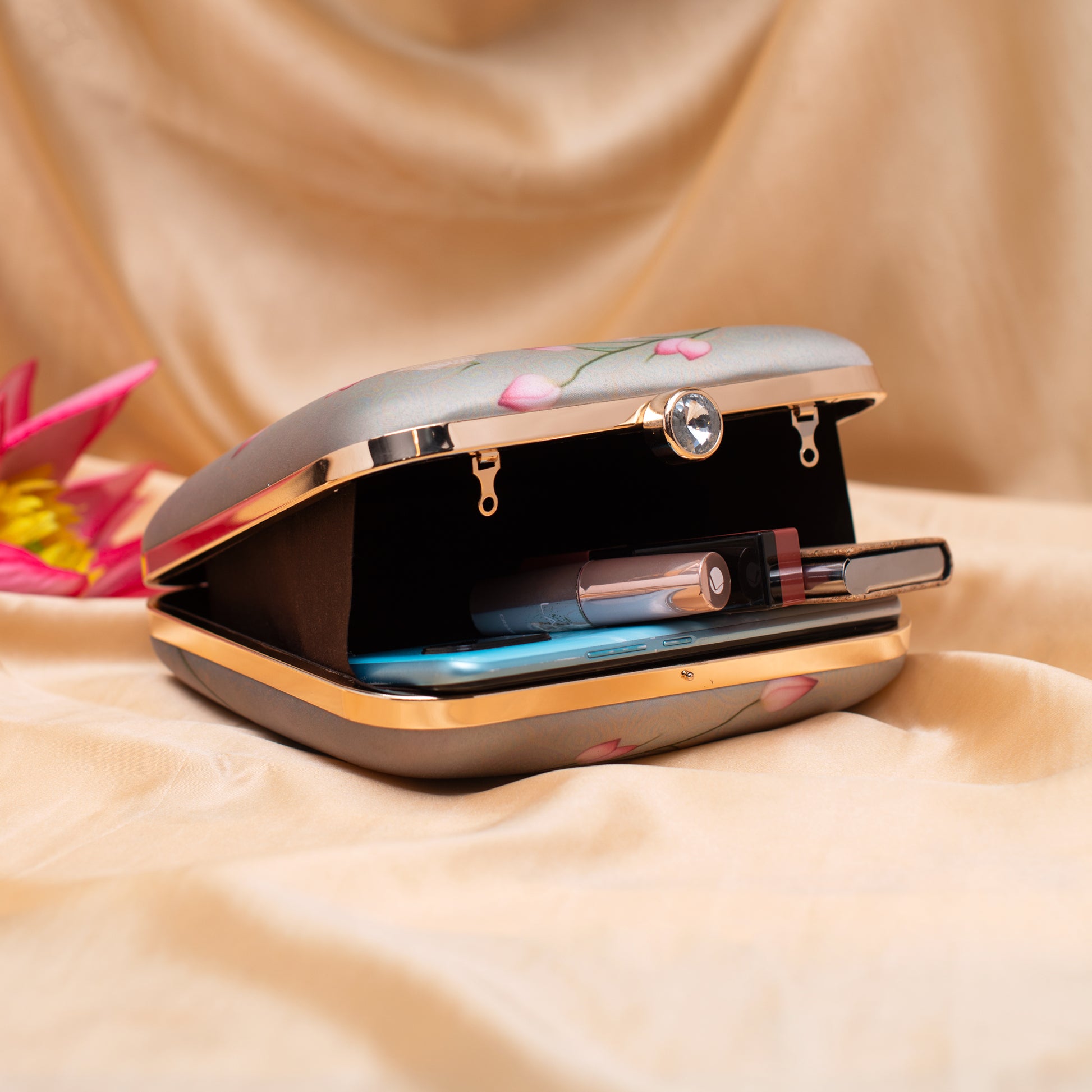 Add a burst of personality to every outing with these handcrafted clutches. Designed to blend fashion and art, each piece is a mini canvas—printed with vibrant illustrations, finished with a luxe hard-case body, and accented with a gleaming gold clasp and chain