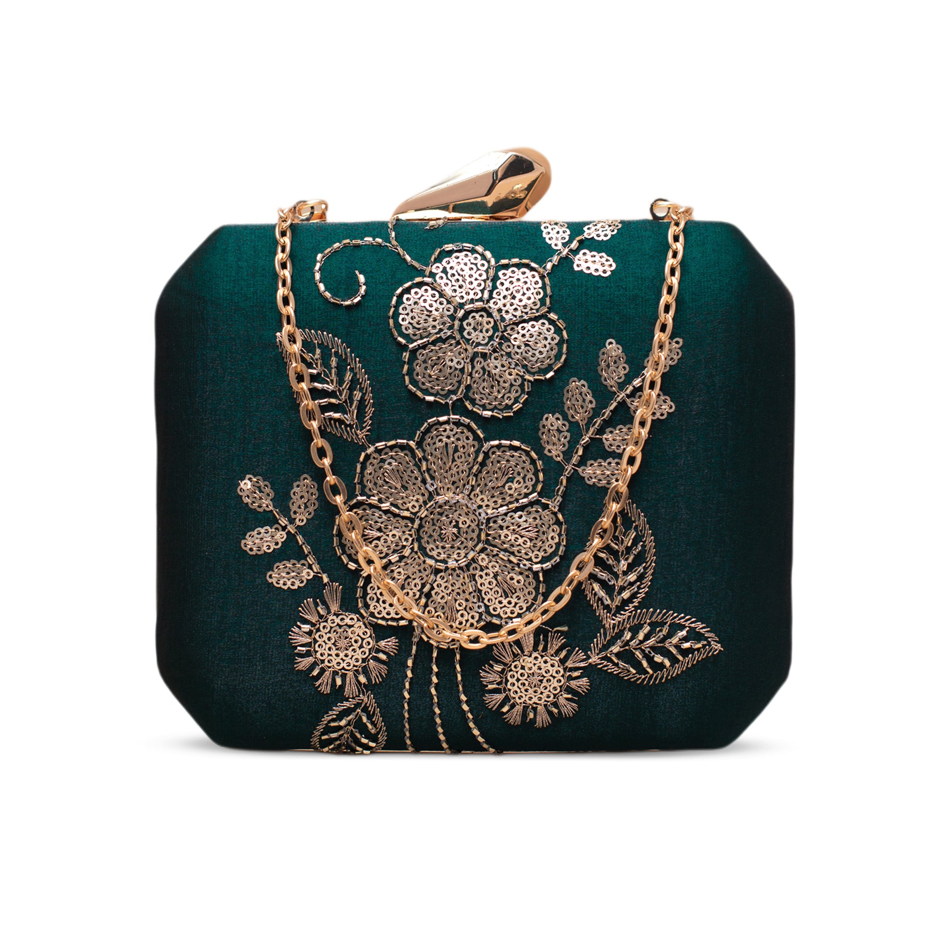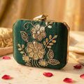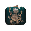 Artklim Luxury Green Gold Thread Floral Clutch