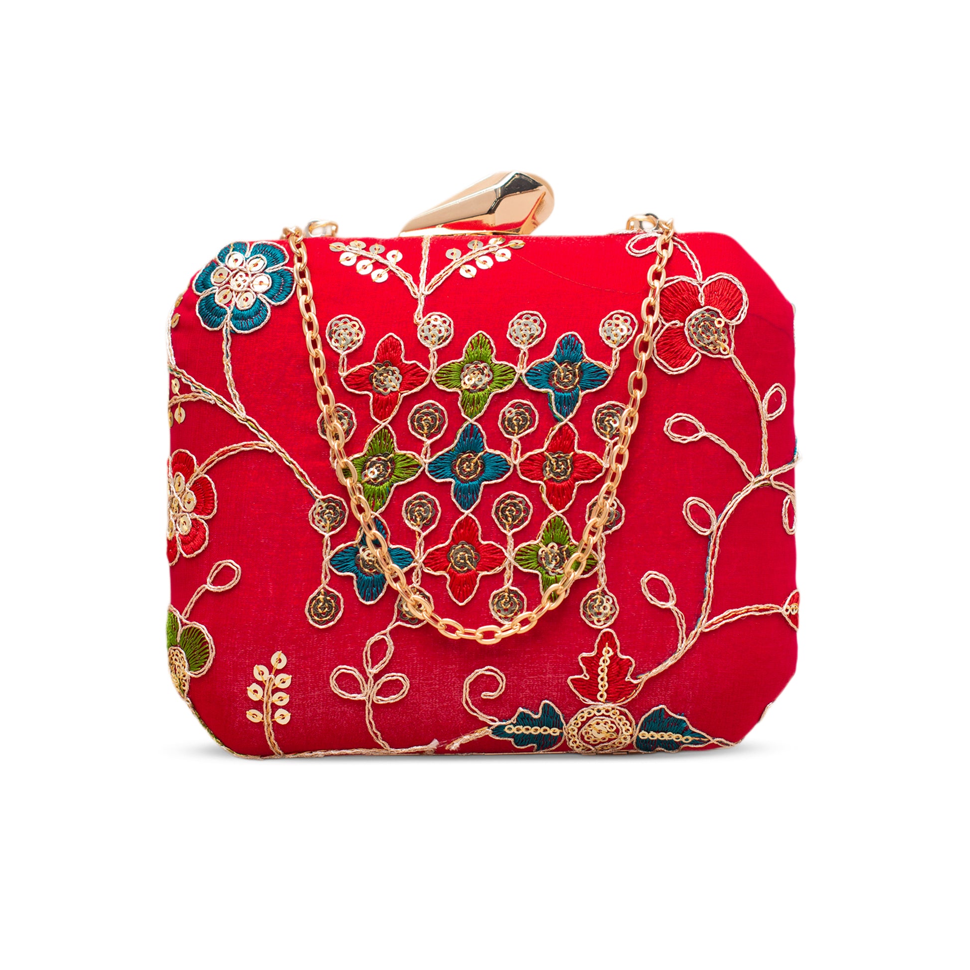 Artklim Luxury Red Gold Thread Embroidered Clutch
