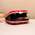 Add a burst of personality to every outing with these handcrafted clutches. Designed to blend fashion and art, each piece is a mini canvas—Embroided finished with a luxe hard-case body, and accented with a gleaming gold clasp and chain.