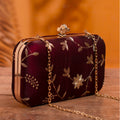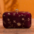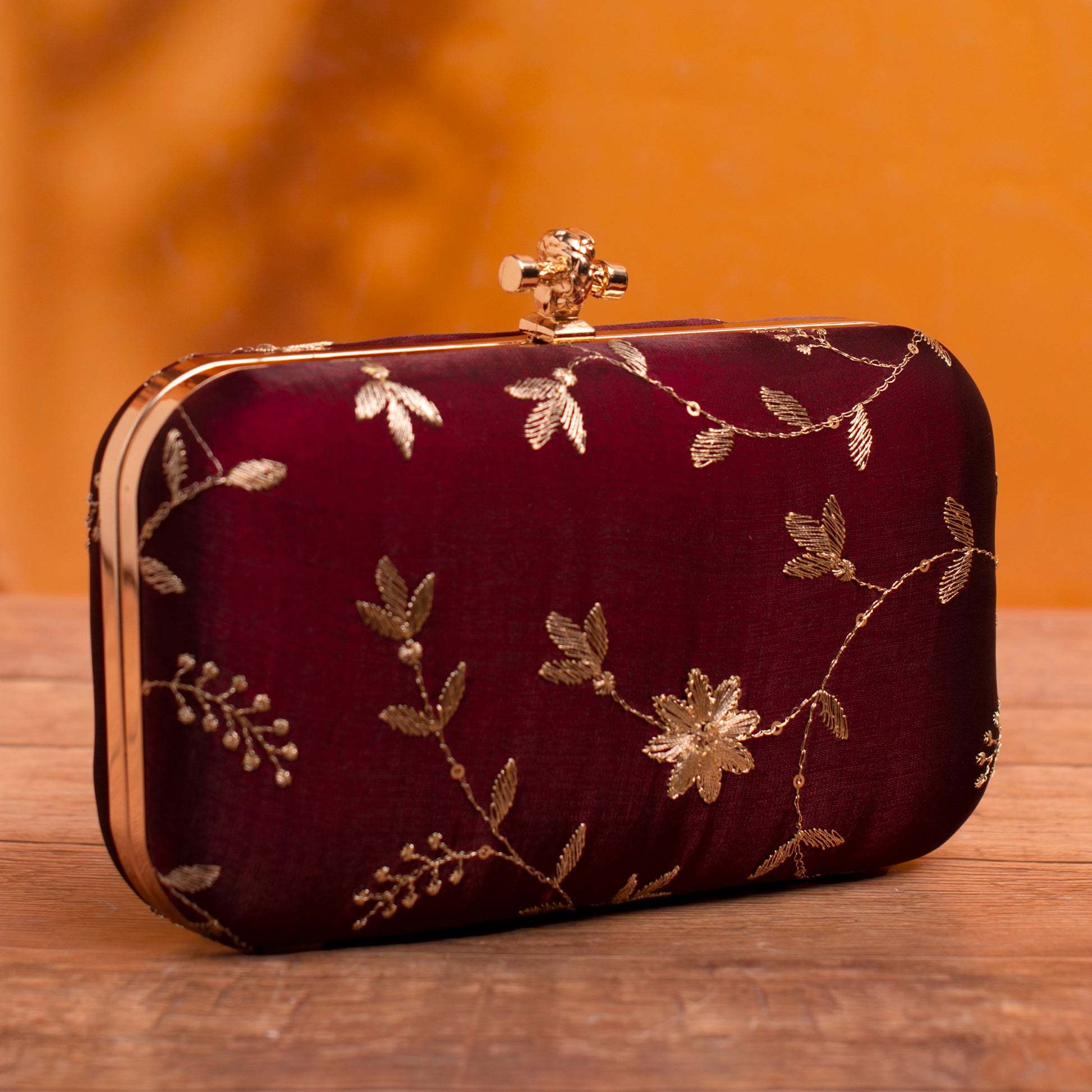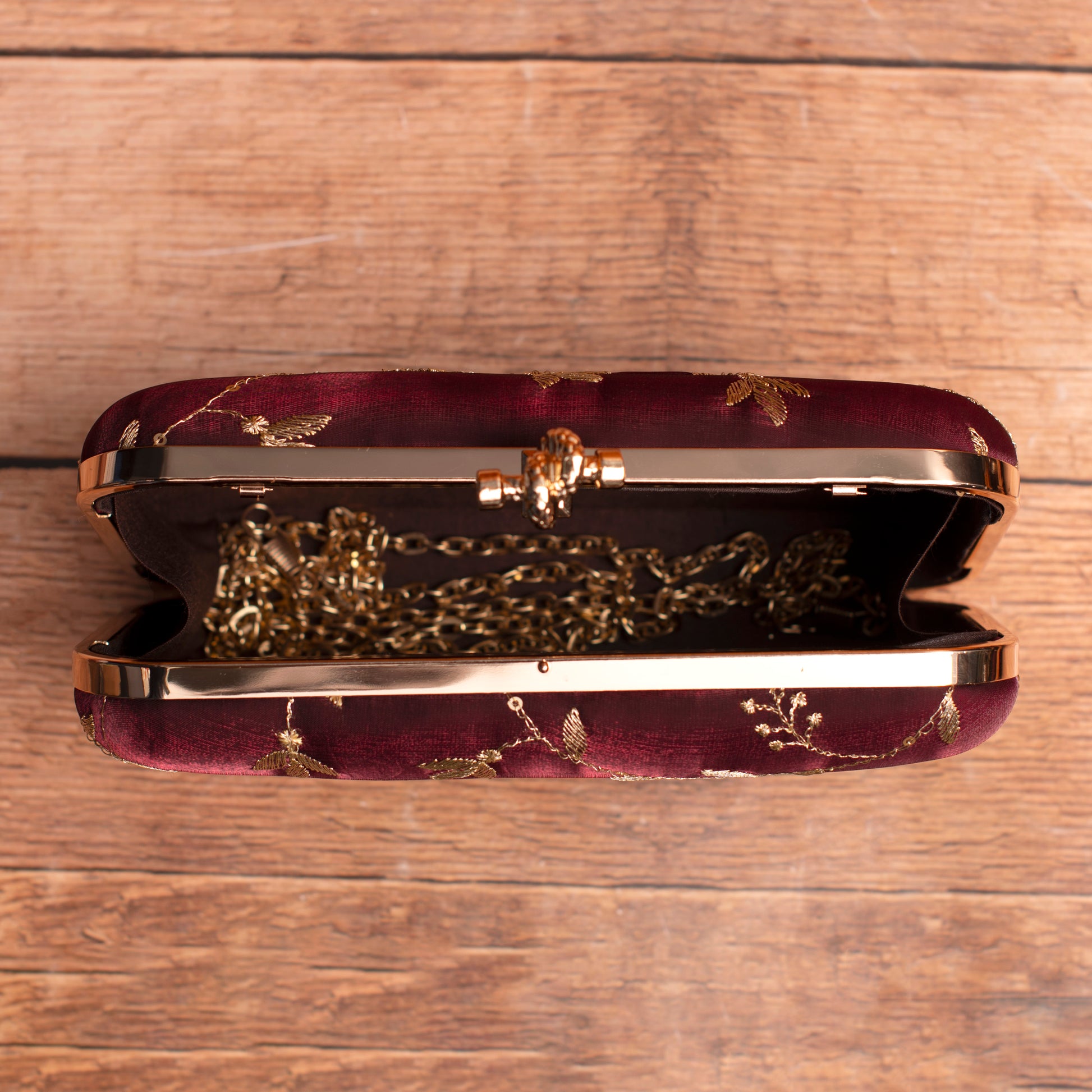 Artklim Maroon Based Golden Threadwork Embroidery Clutch