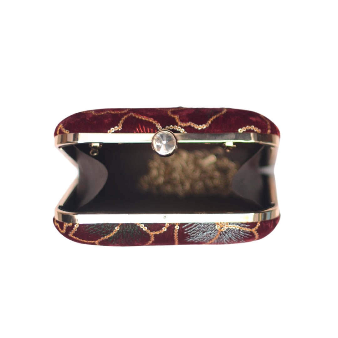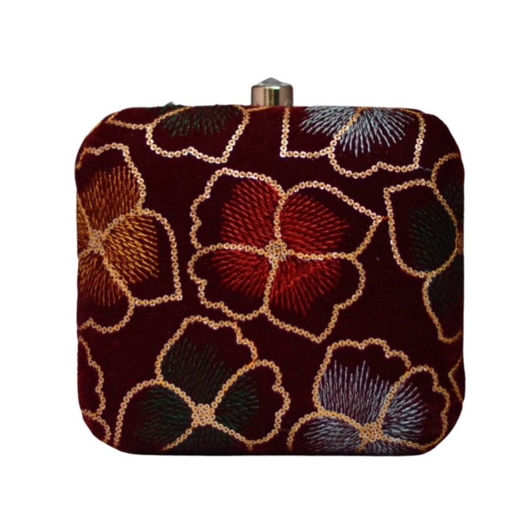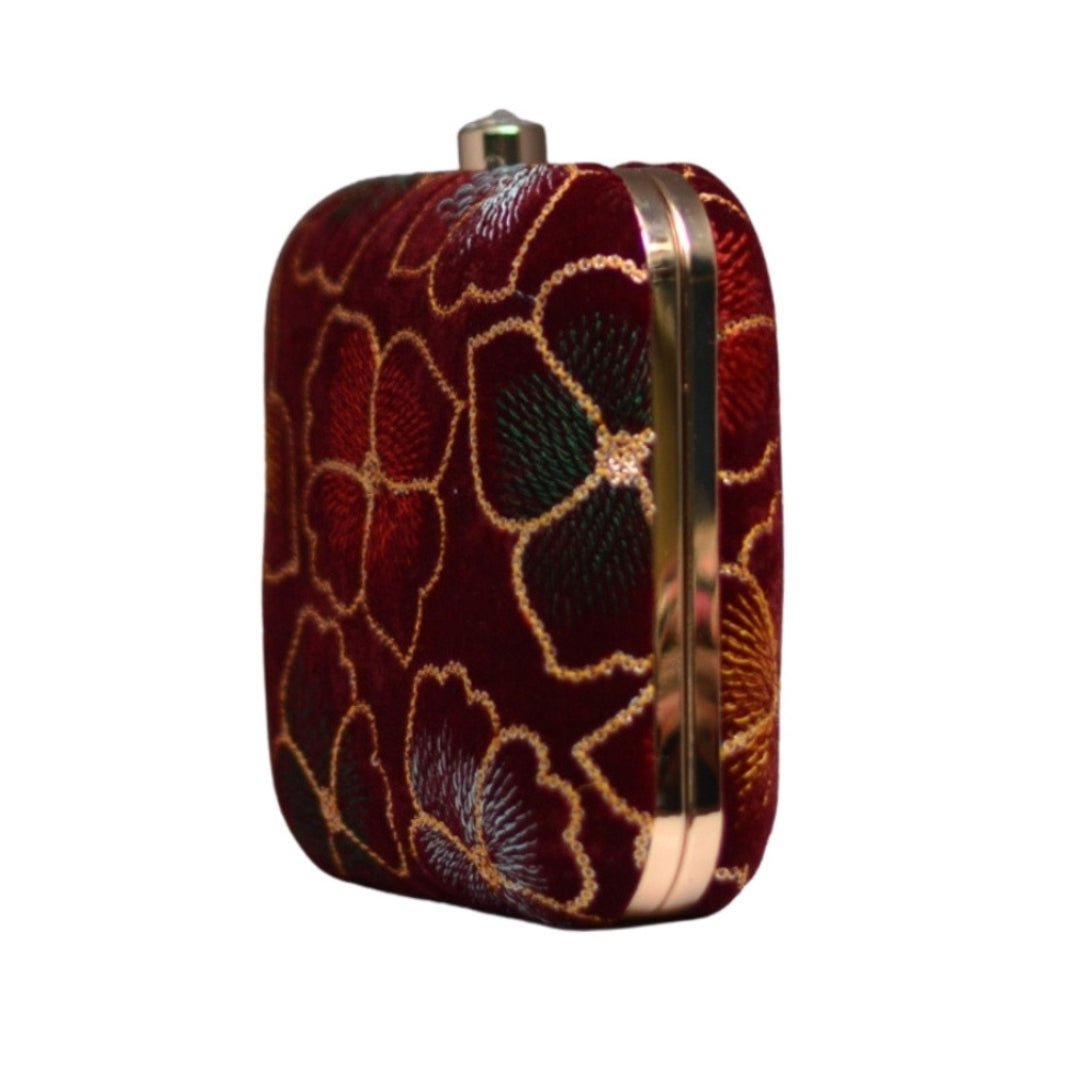 Artklim Maroon Flower Sequenced Embroidery Clutch