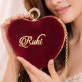 Artklim Maroon Heart-Shaped Velvet Name Customized Clutch