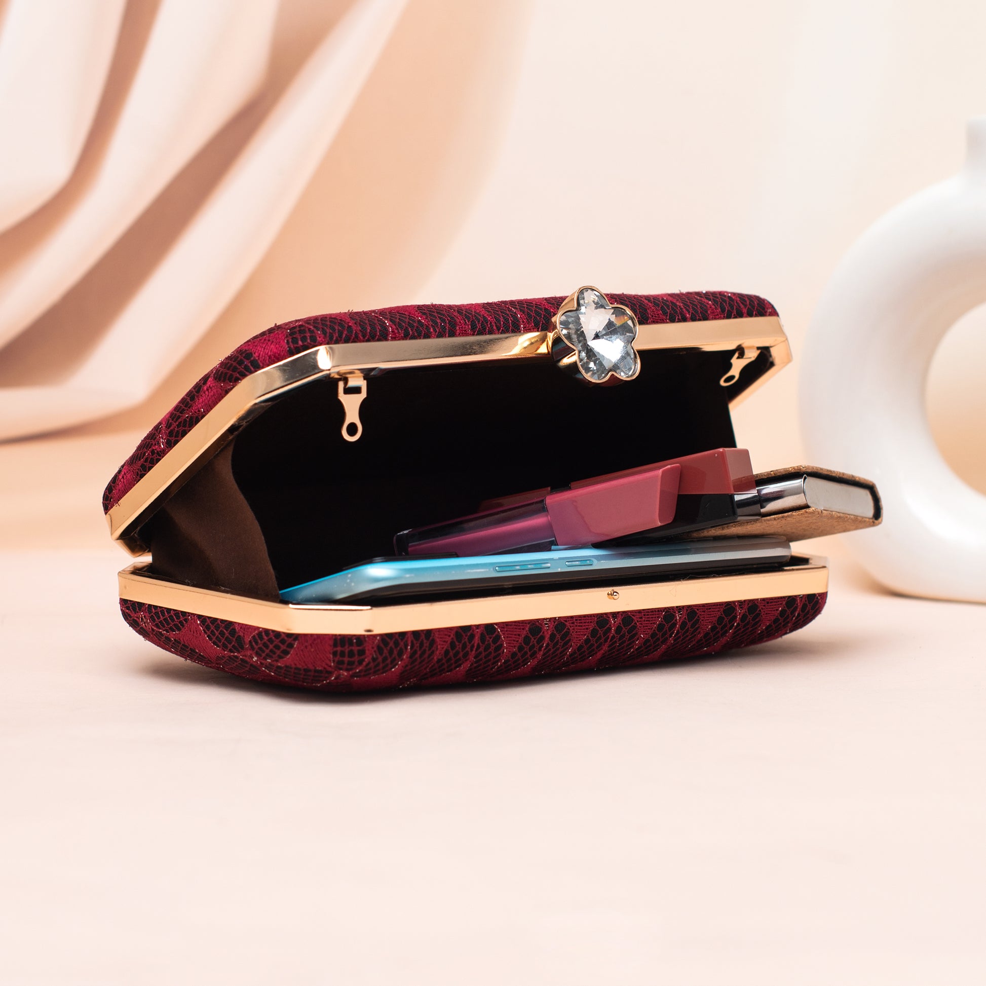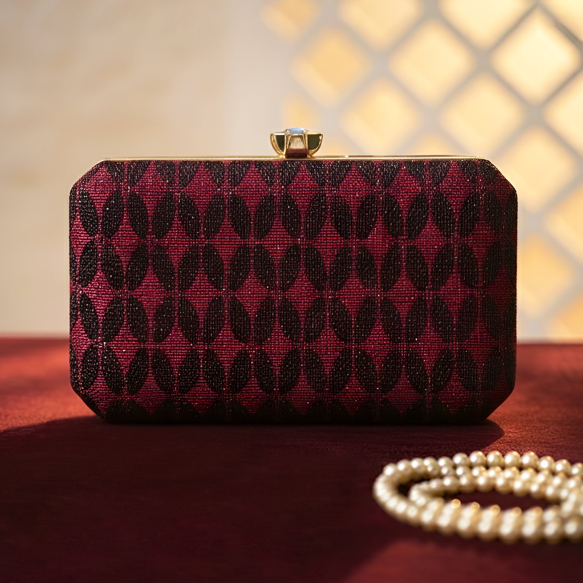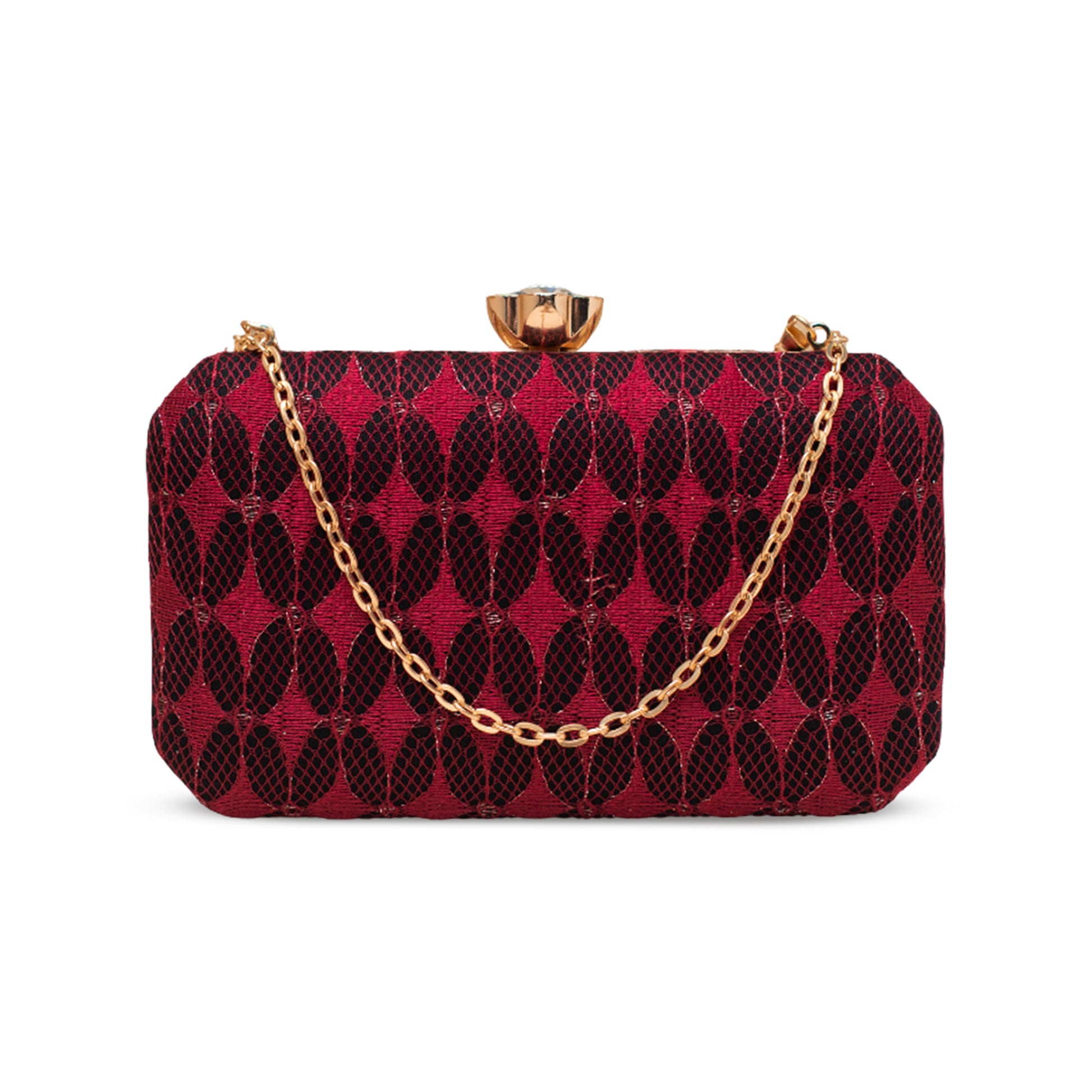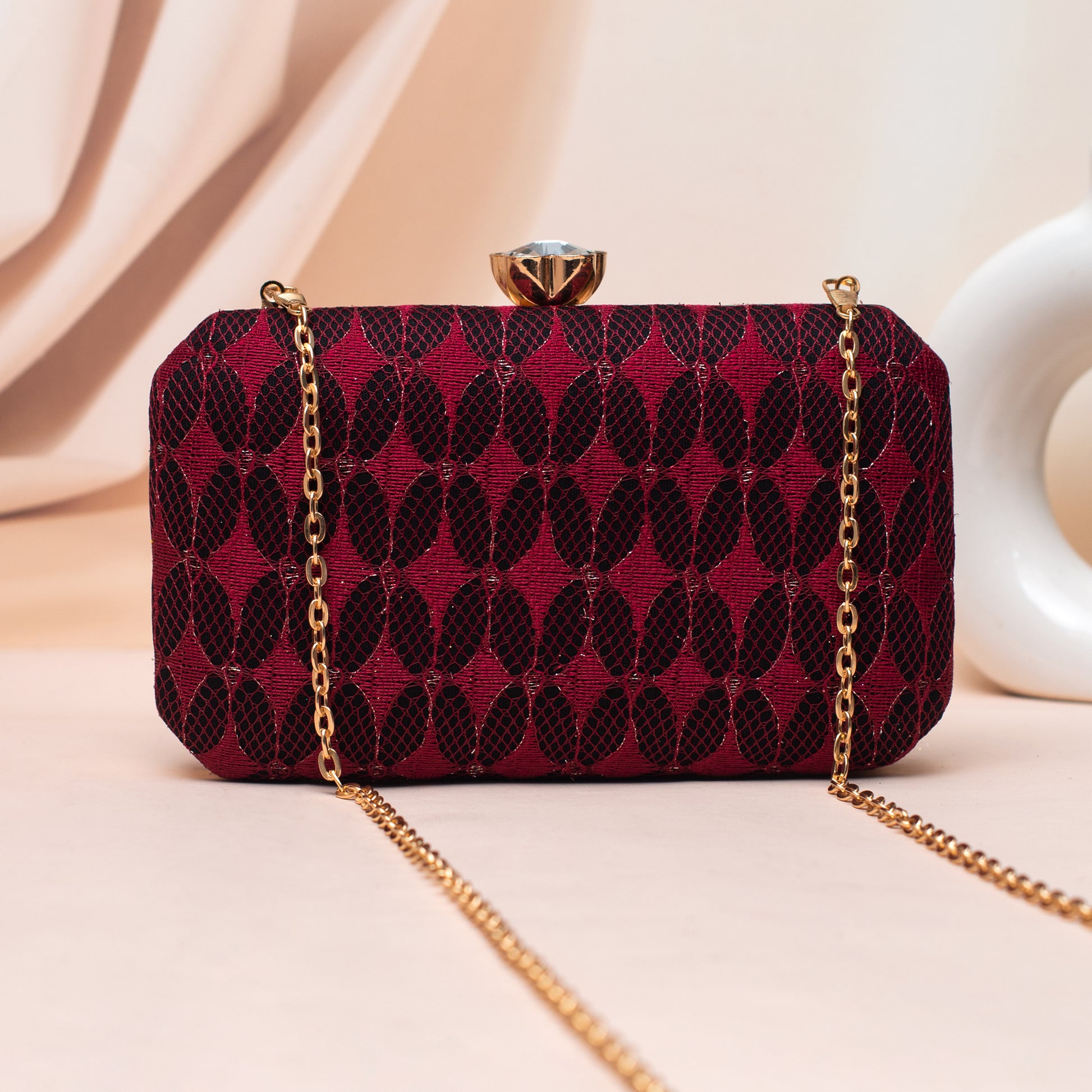 Artklim Maroon Patterned Embroidery Clutch