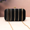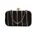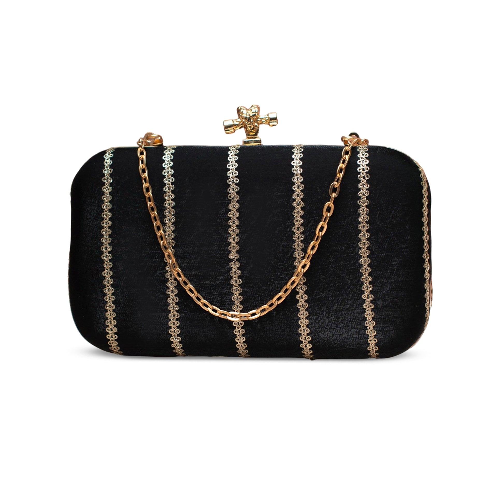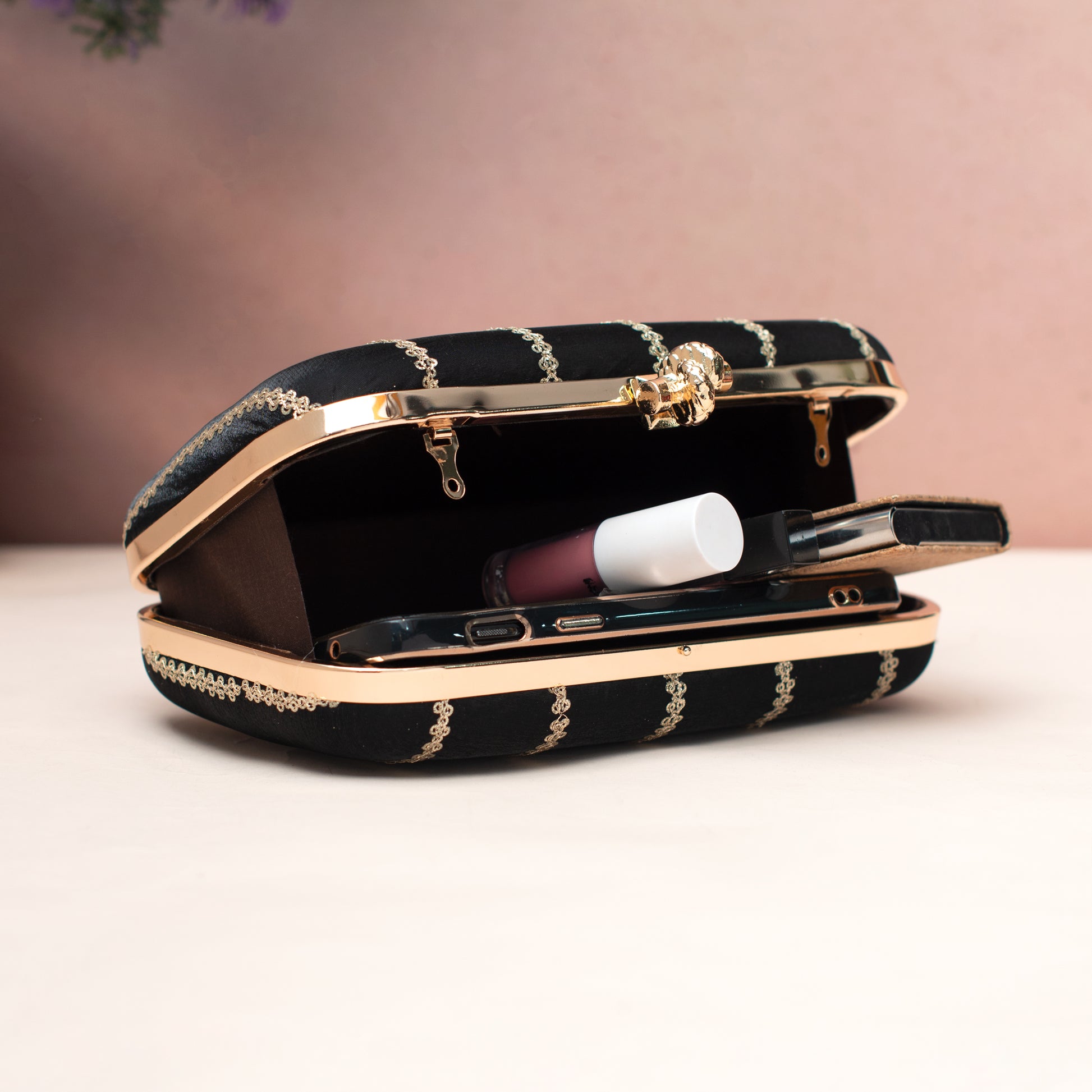 Artklim Midnight Black Gold-Striped Embroidered Clutch