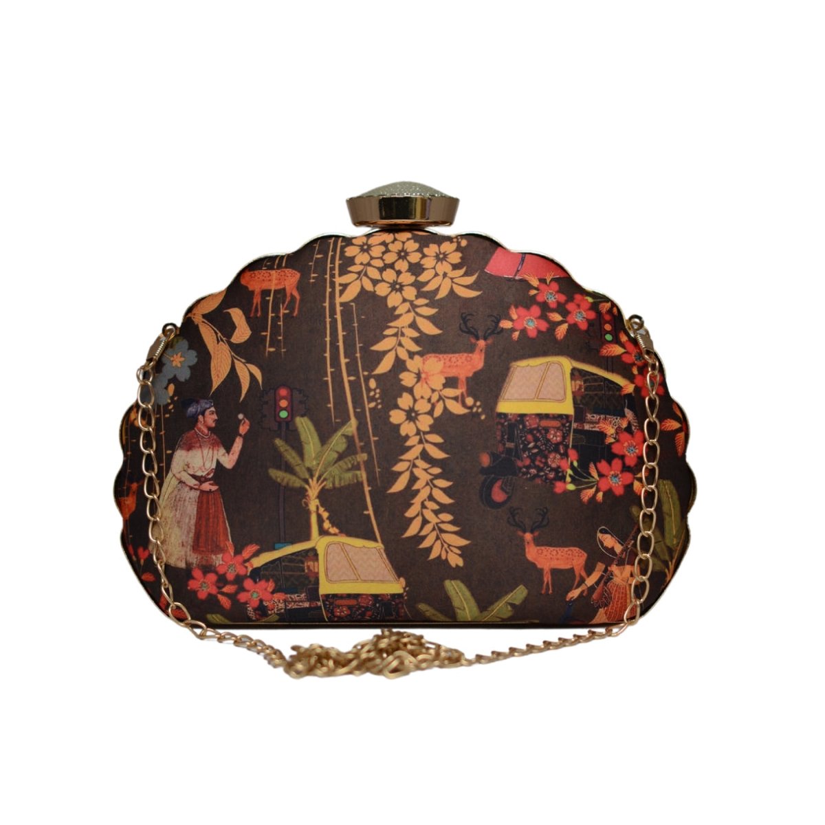 Artklim Modern Mughal Motif D-shape Clutch