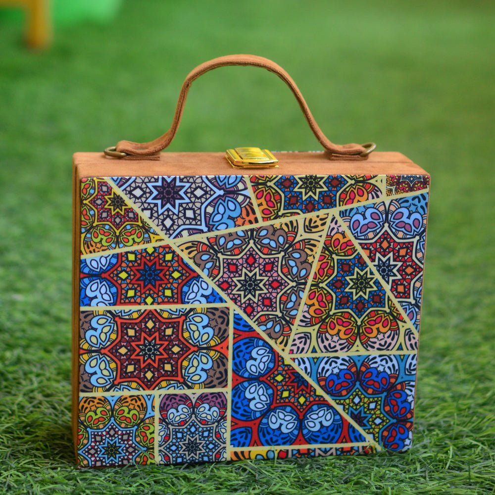 Artklim Moroccan Tiles Printed Suitcase Style Clutch