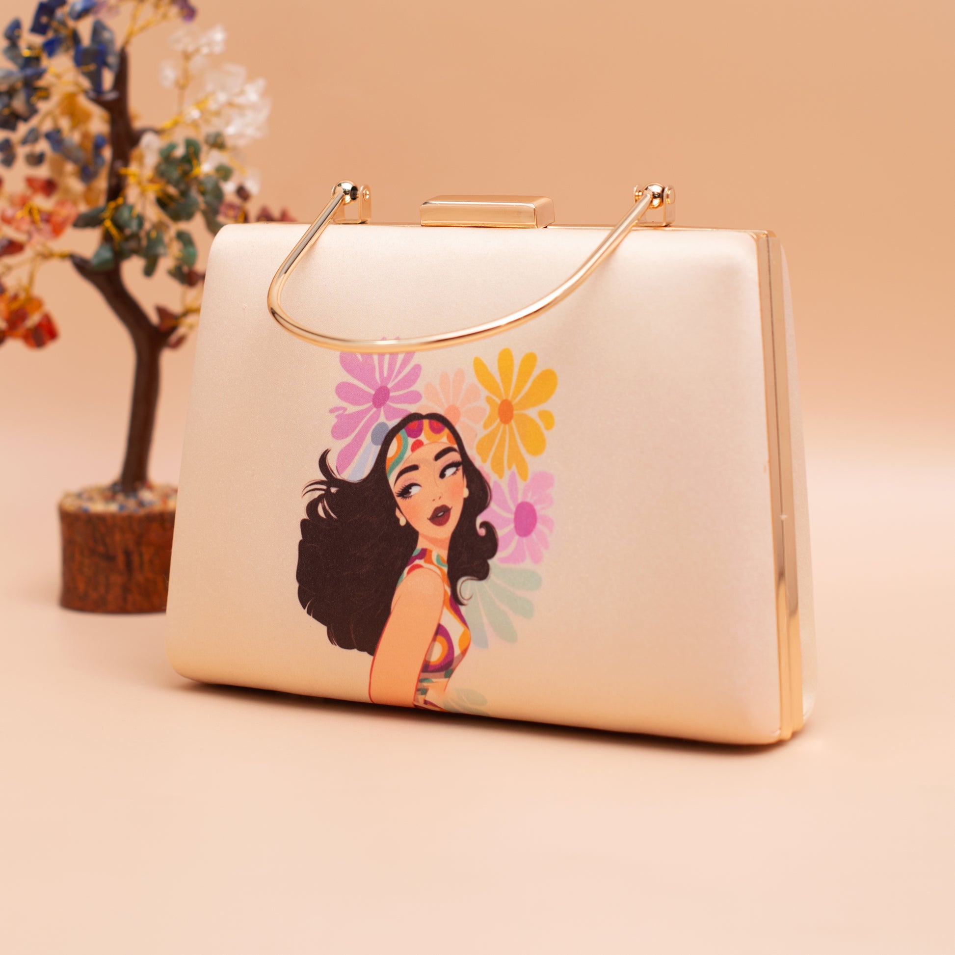 Add a burst of personality to every outing with these handcrafted clutches. Designed to blend fashion and art, each piece is a mini canvas—printed with vibrant illustrations, finished with a luxe hard-case body, and accented with a gleaming gold clasp and chain.
