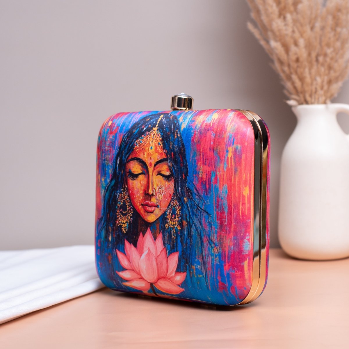 Artklim Multicolored Indian Woman Portrait Printed Clutch