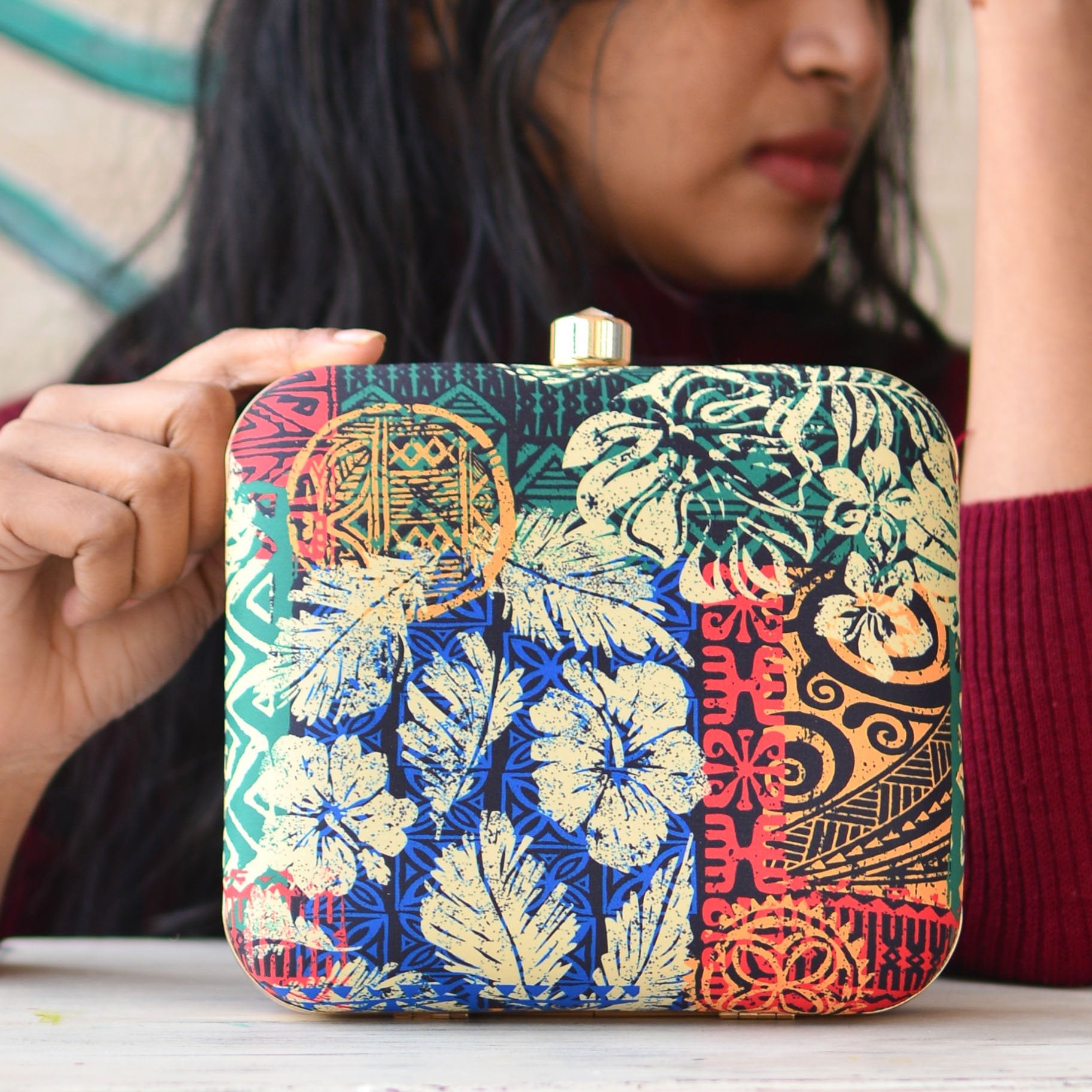 Artklim Multicolour Printed Clutch