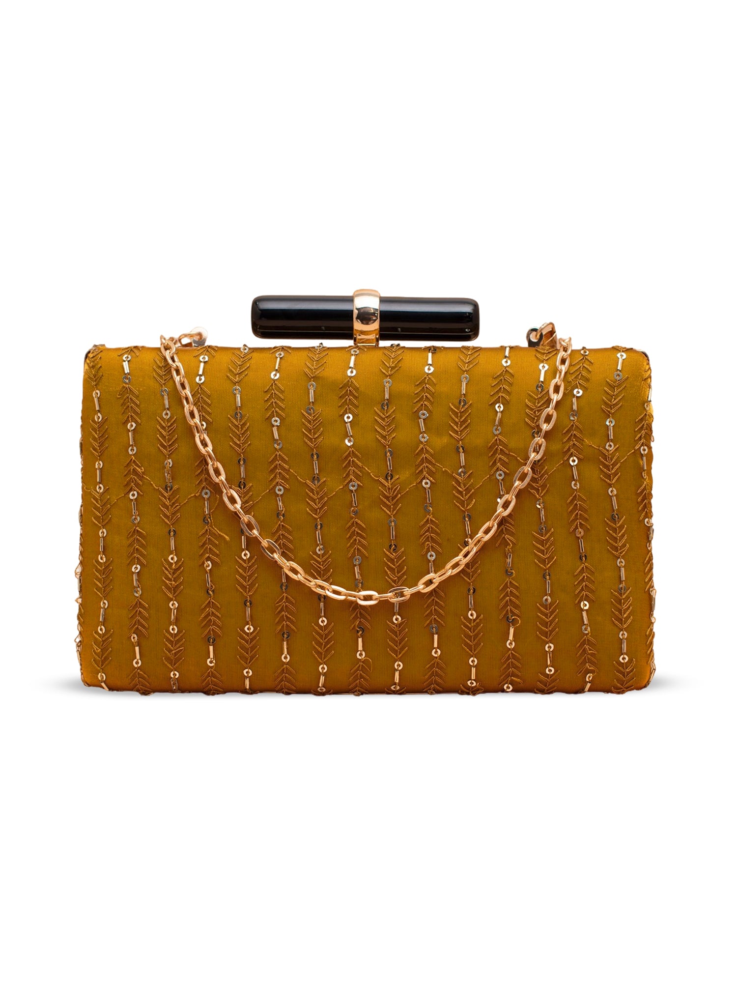 Artklim Mustard Gold Embellished Evening Clutch