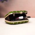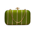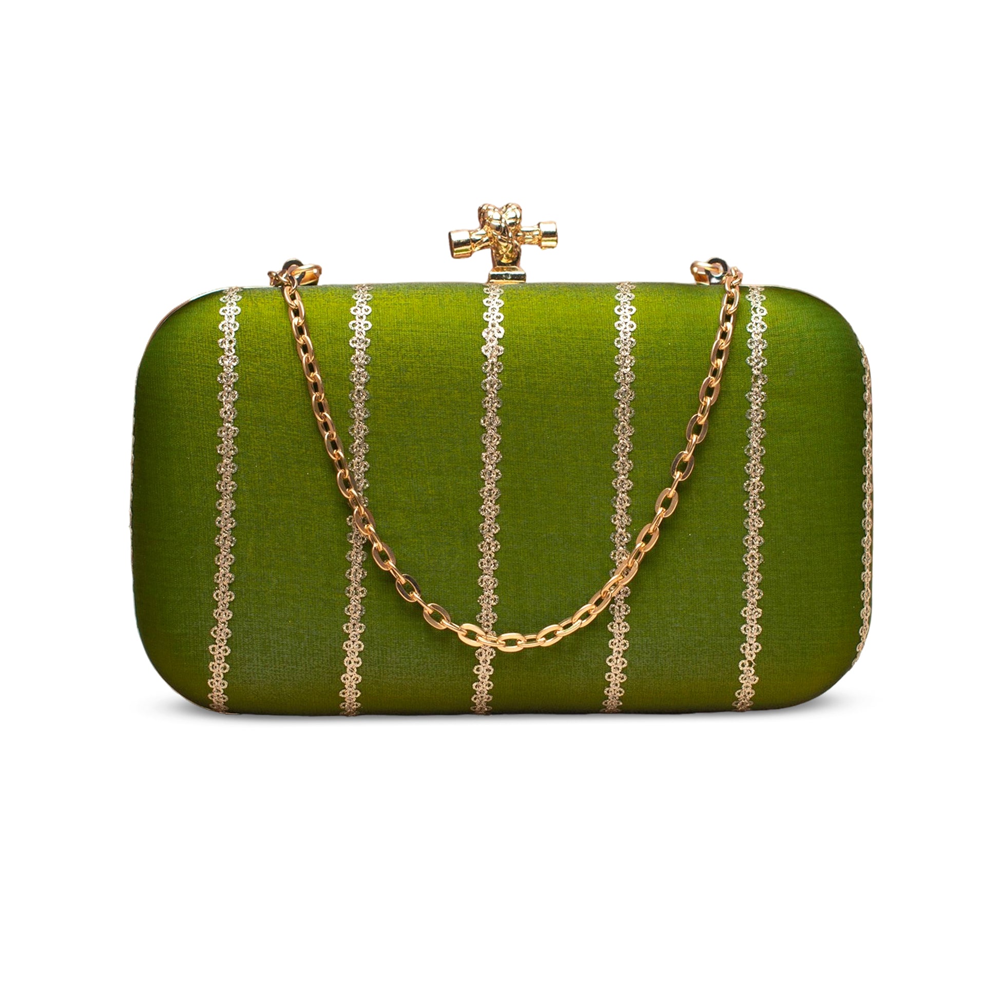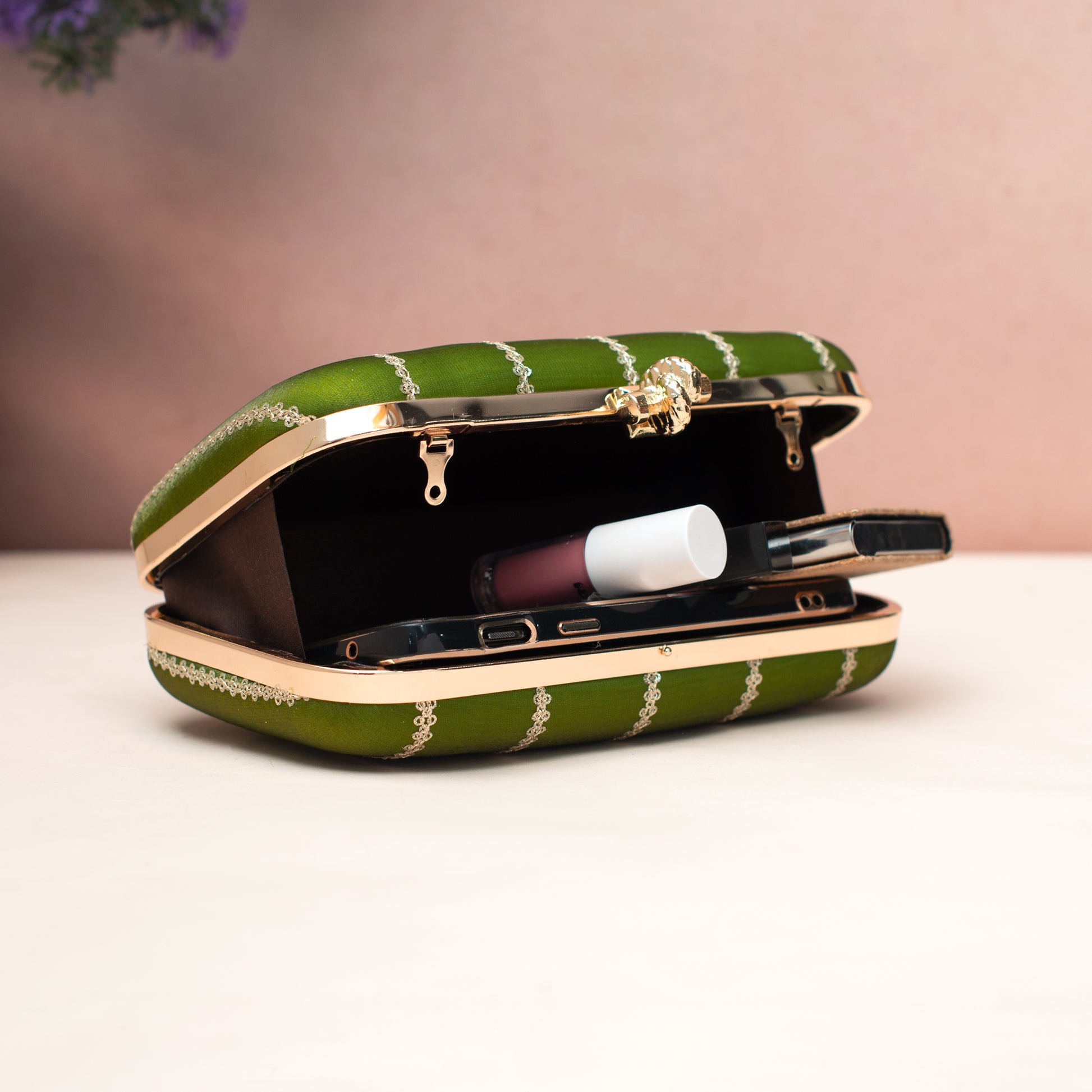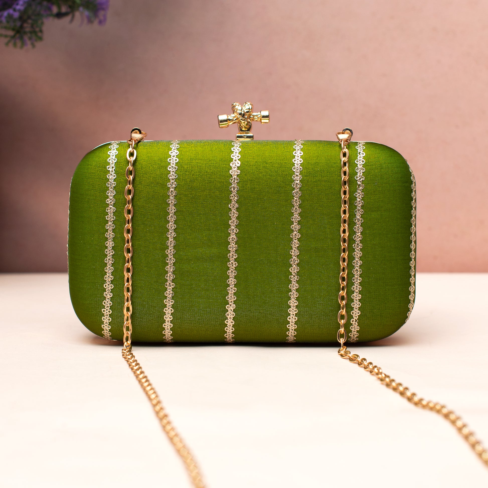 Artklim Olive Green Gold-Striped Embroidered Clutch