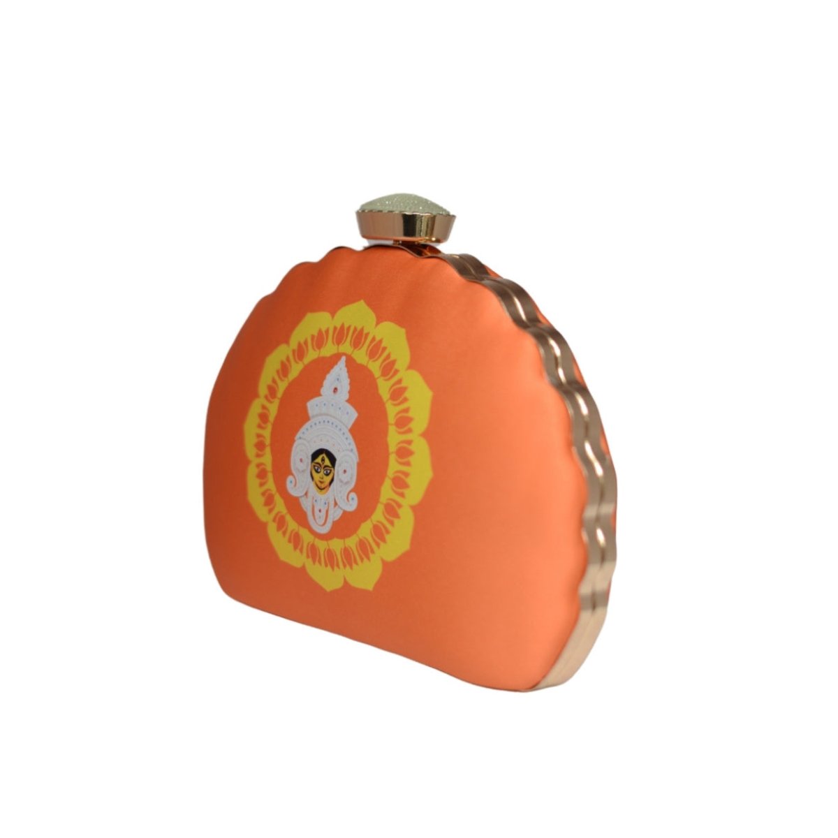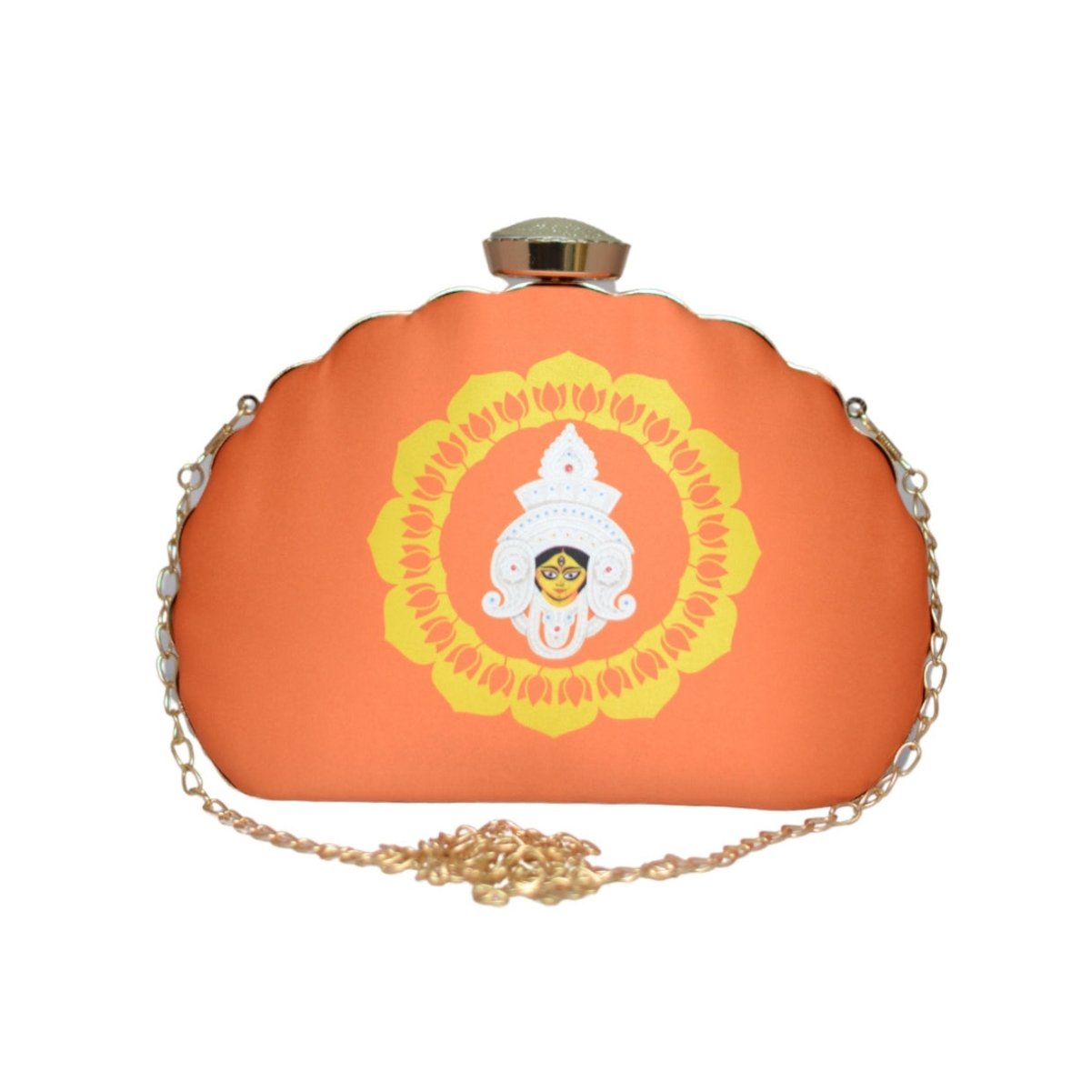 Artklim Orange And Yelllow Durga Printed D-Shape Clutch
